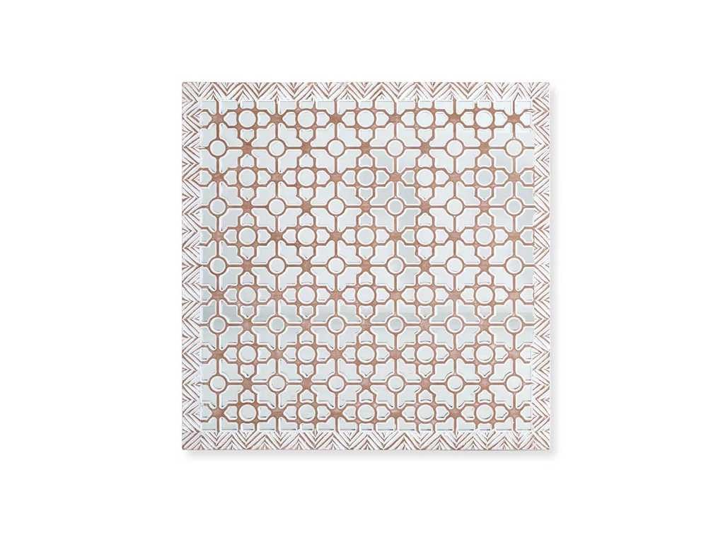 STIJL Breng een vleugje etnische elegantie in je interieur met ons hoofdeinde en de gebeeldhouwde MDF-spiegel. Dit meubelstuk zal zowel praktisch als decoratief zijn voor uw huis. KWALITEIT Gemaakt van massief MDF-hout, is dit meubelstuk zowel duurzaam als esthetisch aantrekkelijk. UITGERUST met MDF houten paneel en spiegel. KLEUREN: Verouderd wit; De kleuren en patronen verschillen van kamer tot kamer, waardoor elk stuk uniek is. Ons meubilair wordt volledig gemonteerd geleverd en hoeft geen montage te maken. REINIGING Verwijder stof met een droge doek. Gebruik geen chemicaliën of schuurmiddelen. AFMETINGEN: 120 cm hoog x 120 cm breed x 3 cm diep. 20 kg Non
