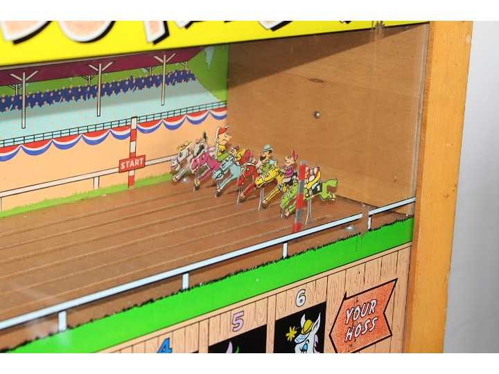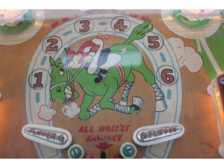 1 speler, electro-mechanisch, met kopanimatie met bewegende paarden, gereviseerd No Merk: Williams Type: Hayburners Bouwjaar: 1951