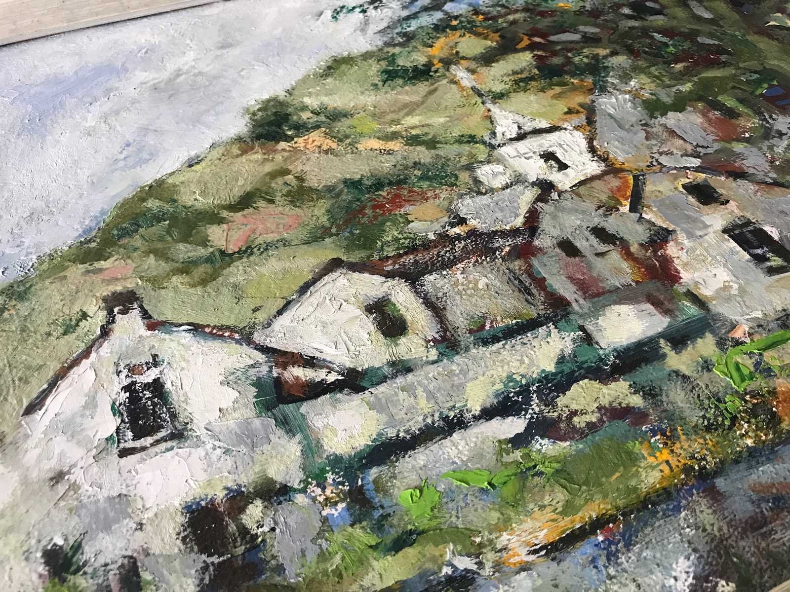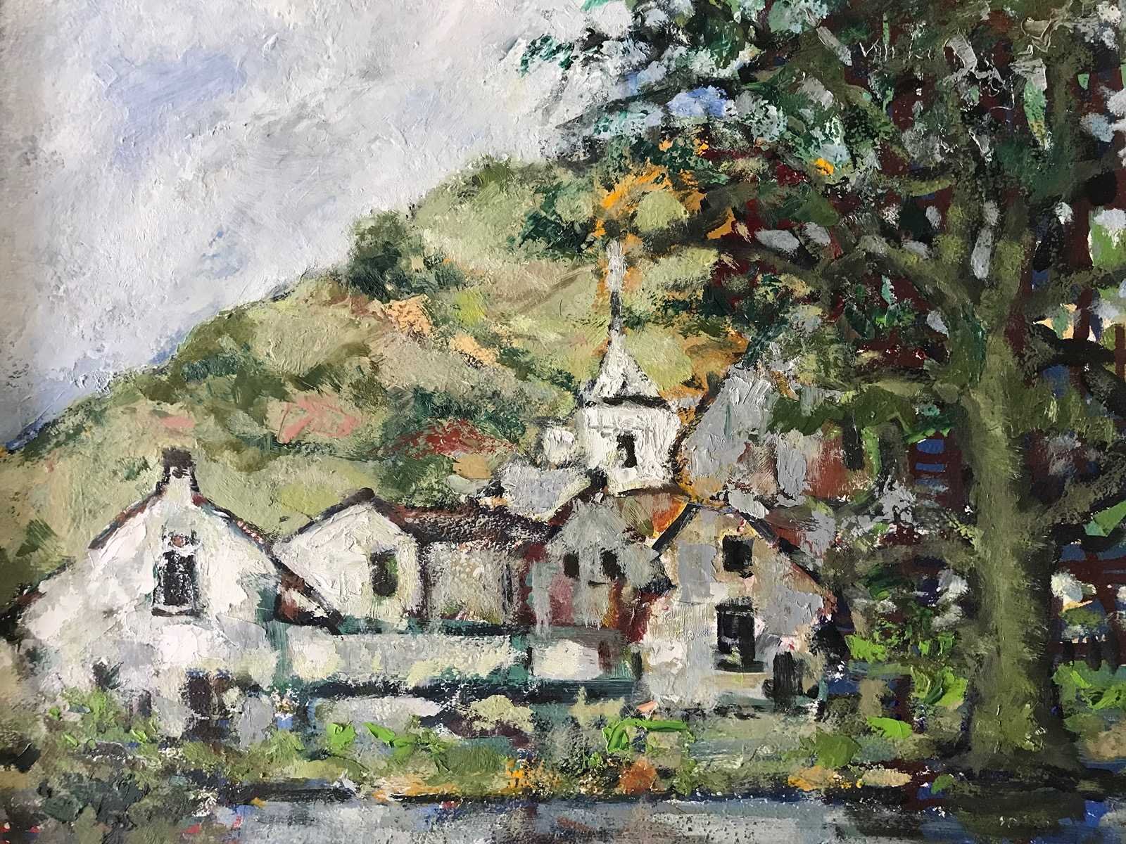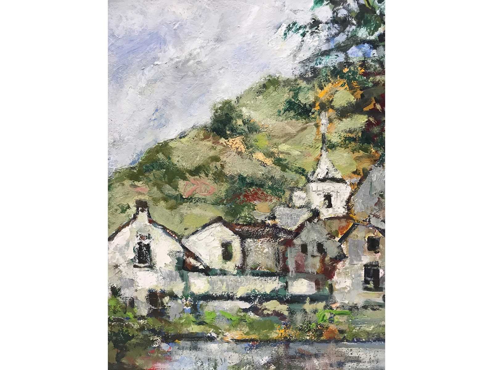 Olieverf op doek. Abstract. Dorp tussen de heuvels. Afm. 58cm x 48cm x 4.5cm. Gesigneerd rechtsboven. No Techniek: Olieverf op doek Handtekening/oplage: true Gesigneerd: Gesigneerd Breedte: 4.5cm Hoogte incl. lijst: 48cm Breedte incl. lijst: 58cm Frame: true Herkomst: Antiekhandelaar