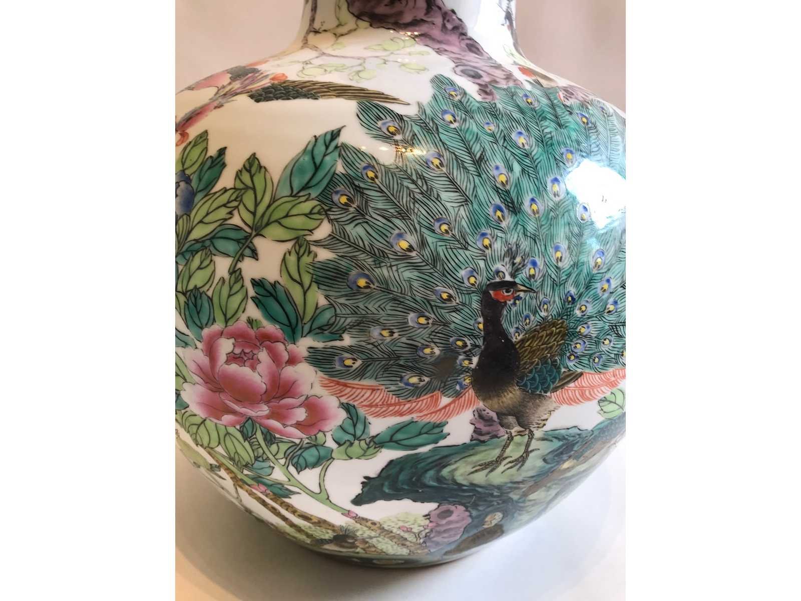 Enorm grote Chinese bolvaas met bloemen en vogel motief. Afm. 38cm diameter en 53.5cm hoog. Perfecte conditie. Gestempeld onderzijde. No Land: China Hoogte: 53.5cm Diameter circa: 38 Herkomst: Antiekhandelaar