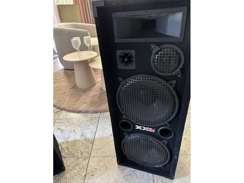 2 zware geluidsboxen XXL 300 Watt . Hoog 100 cm - breed 38 cm- diep 30 cm - perfect werkend . Nee