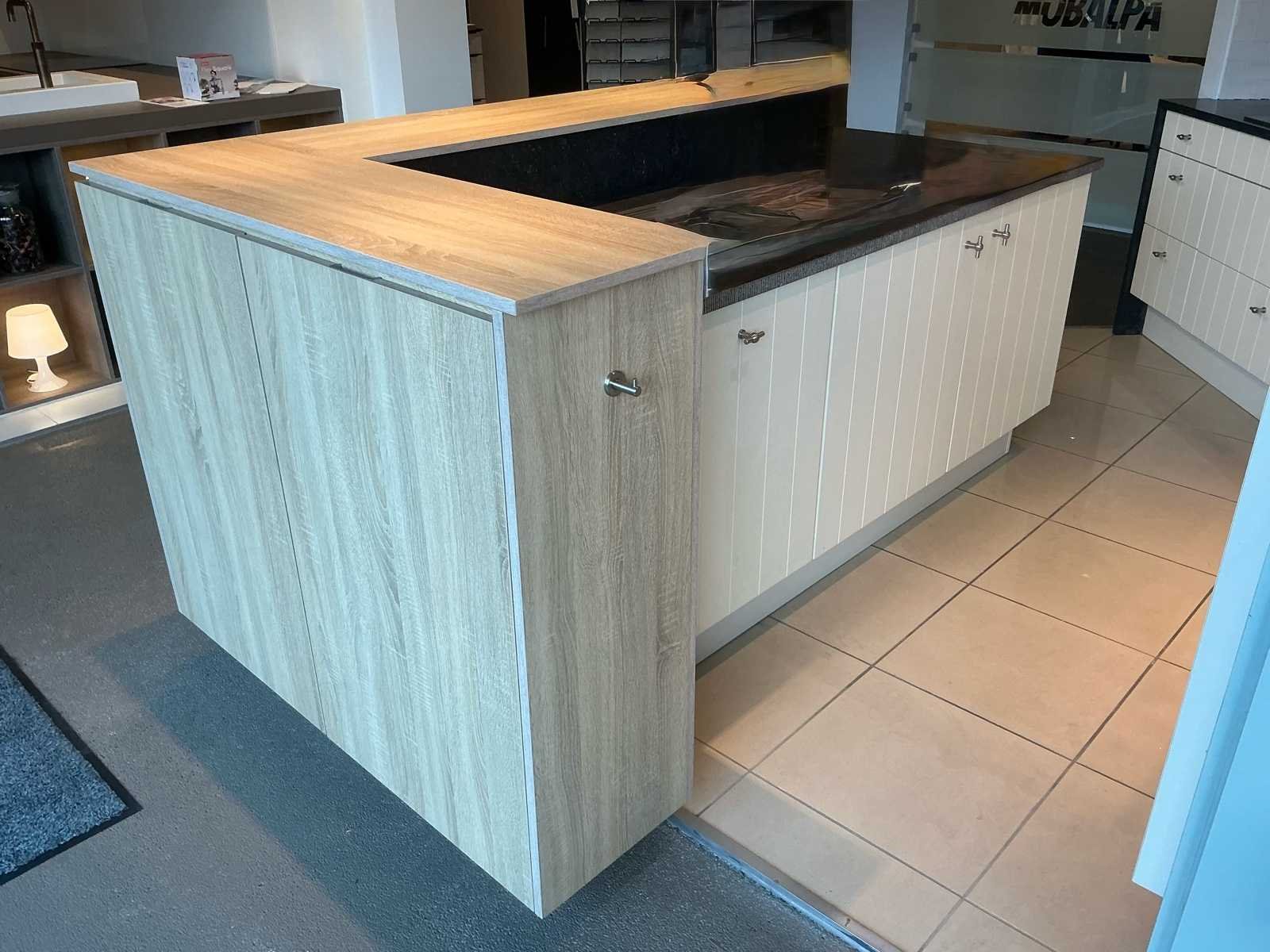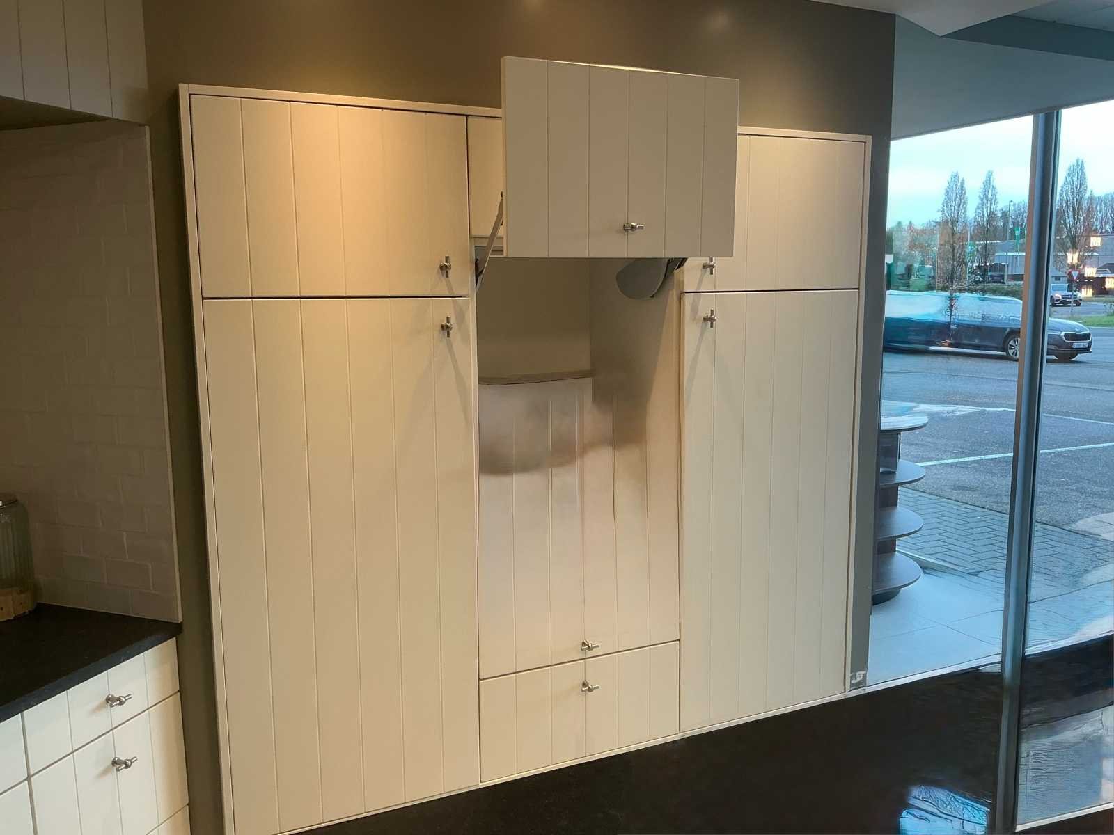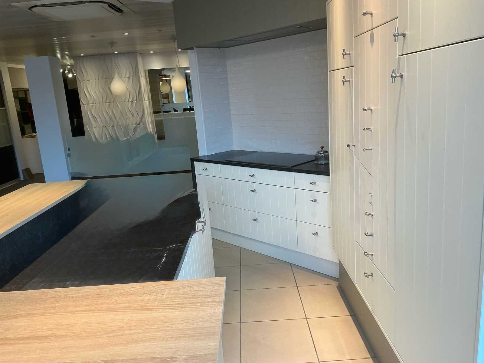Showroom keuken, nieuw, nieuw zonder toestellen waarbij wel,de dampkap van Novy inbegrepen is, ruimte voorzien voor toestellen (oven, afwasmachine, spoelbak, kookplaat en oven). Werkblad in arduin. Keuken zelf uit te breken voor schade te voorkomen voor verkoop. No Kleur: Wit Lengte: 190 Breedte: 96