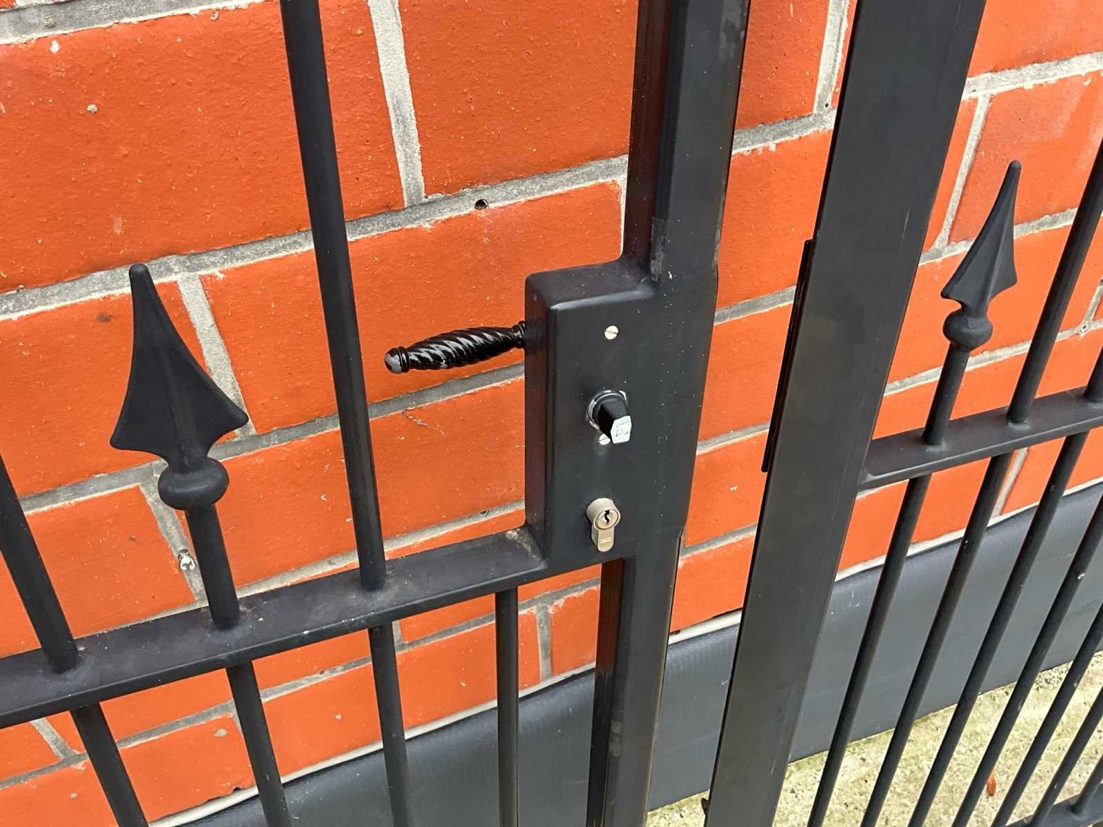 Palen 170hoogte x 10dikte Afmeting hek : hoogte 213CM X 4000Cm totale van het hekken zonder palen Gegalvaniseerd en gepoedercoat matzwart Sleutels aanwezig Handvat eenzijdig afgebroken No