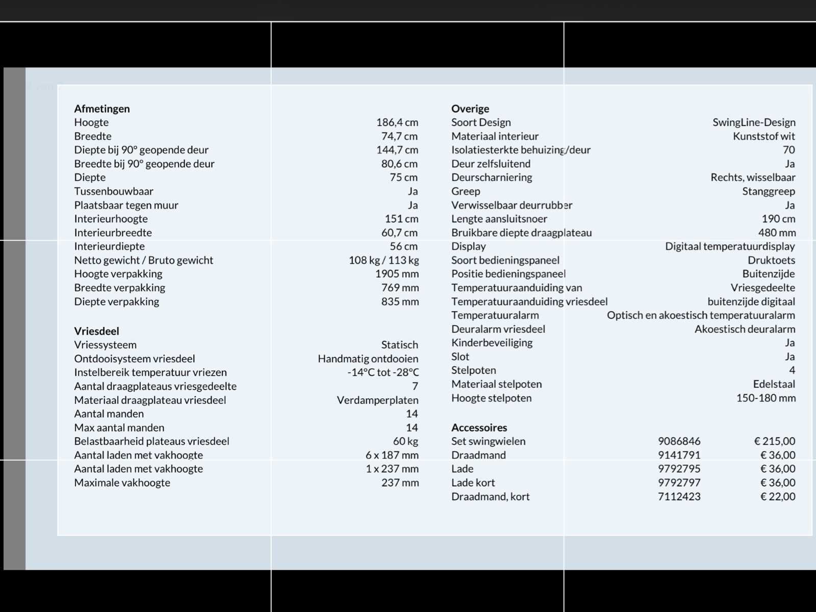 No Merk: Liebherr Type: GG5210 Digitale uitlezing: true Temperatuurbereik max.: -28°c Eigen gewicht: 108kg Aansluiting: 220V Capaciteit.: 513l