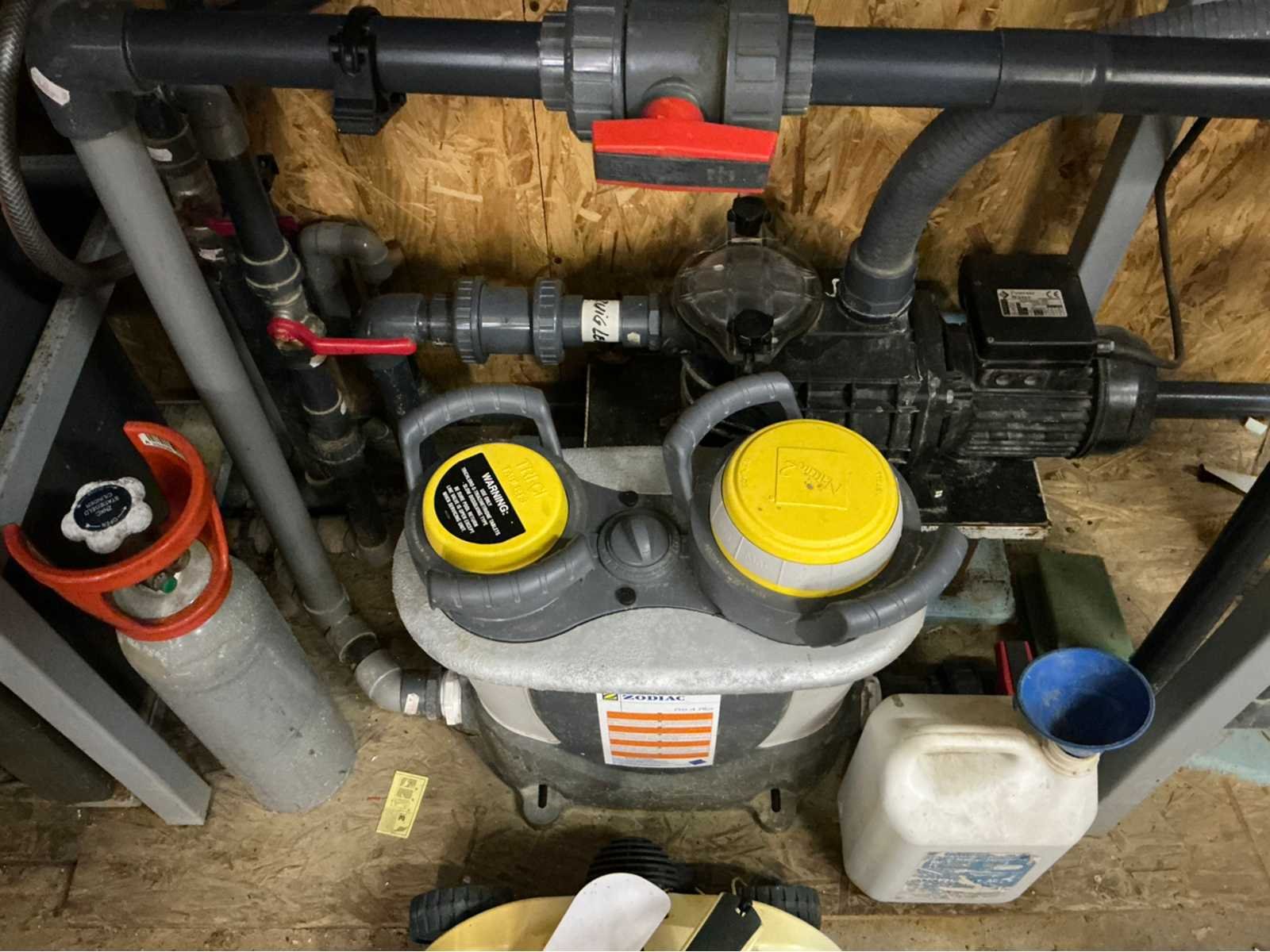 Complete zwembadinstallatie bestaande uit een Sun + Heat PRO 125+ISO warmtepomp (12,5 kW), Pentair AZUR zandfilter, Pentair Hydronaut pomp en Zodiac doseersysteem. De installatie is geschikt voor het verwarmen, filteren en onderhouden van een privézwembad. Alles is professioneel aangesloten met PVC-leidingen en afsluiters, klaar voor aansluiting op een bestaand zwembadcircuit. De componenten verkeren in nette gebruikte staat en zijn afkomstig uit een werkende installatie. Nee Merk: Sun + Heat Model: PRO 125+ISO Warmptepomp 12,5KW Vermogen (kW): 12.5kW