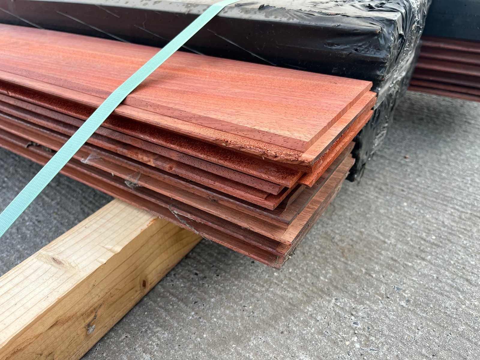 Padouk tand en groef gevelplanken kops vertand. Te gebruiken als gevelbekleding. Dit lot bestaat uit 2 pakketten in 2 verschillende maten. Eerste pakket van 26 stuks 1,20m lengte en 130 mm breedte en 15 mm dikte. Tweede pakket van 15 stuks 1,50m lengte en 130 mm breedte en 15 mm dikte. Nee Merk: Padouk Houtsoort: Padouk Materiaal: Hout Lengte: 150cm Breedte: 130mm Hoogte: 15mm Kleur: bruin