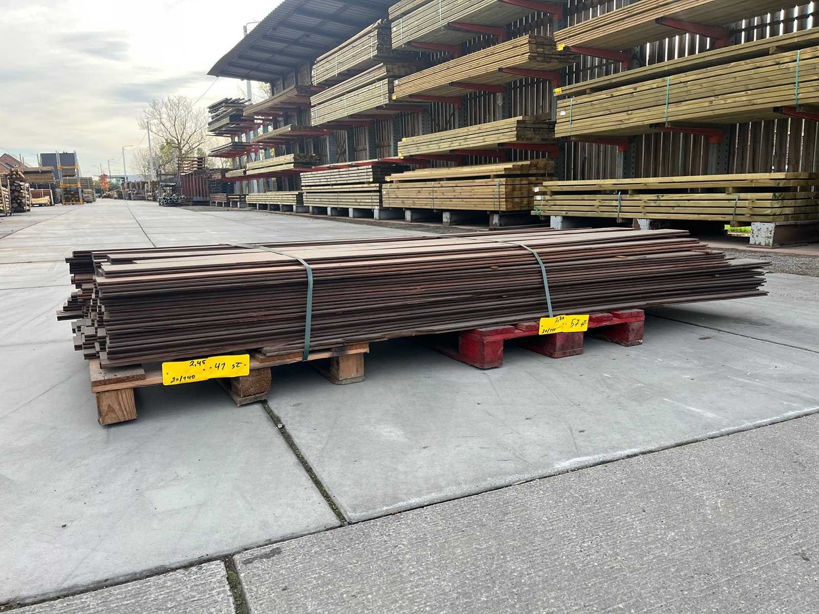 D-deck terrasplanken merbau. Dit lot bestaat uit 2 pakketten in 2 verschillende maten. Eerste pakket 41 stuks met lengte 2,45m en 140 mm breedte en 21 mm dikte. Tweede pakket van 57 stuks met lengte 2,80m en breedte 140mm en dikte 21mm. Nee Merk: D-Deck Houtsoort: Merbau Materiaal: Hout Lengte: 280cm Breedte: 140mm Hoogte: 21mm Kleur: Bruin