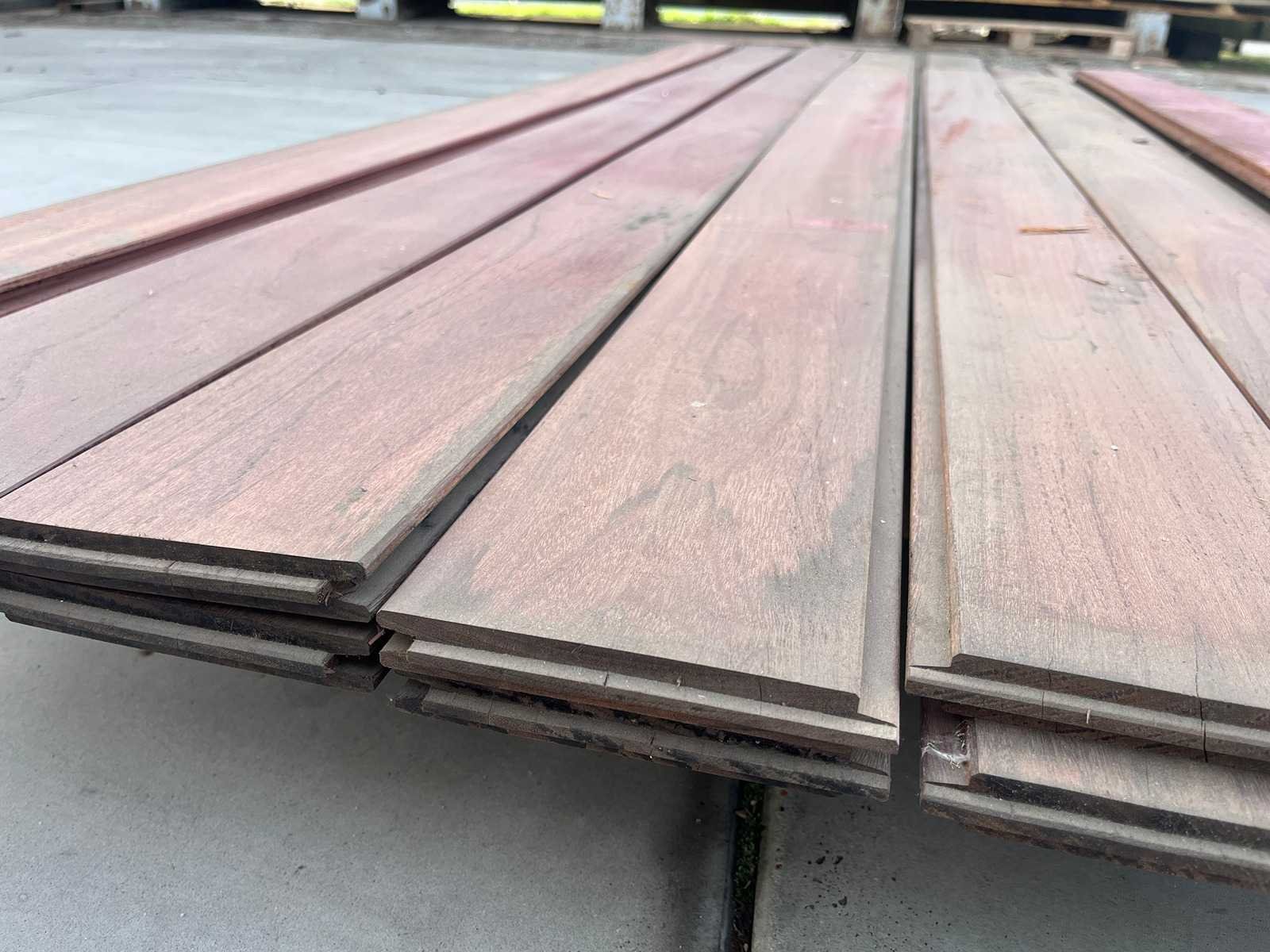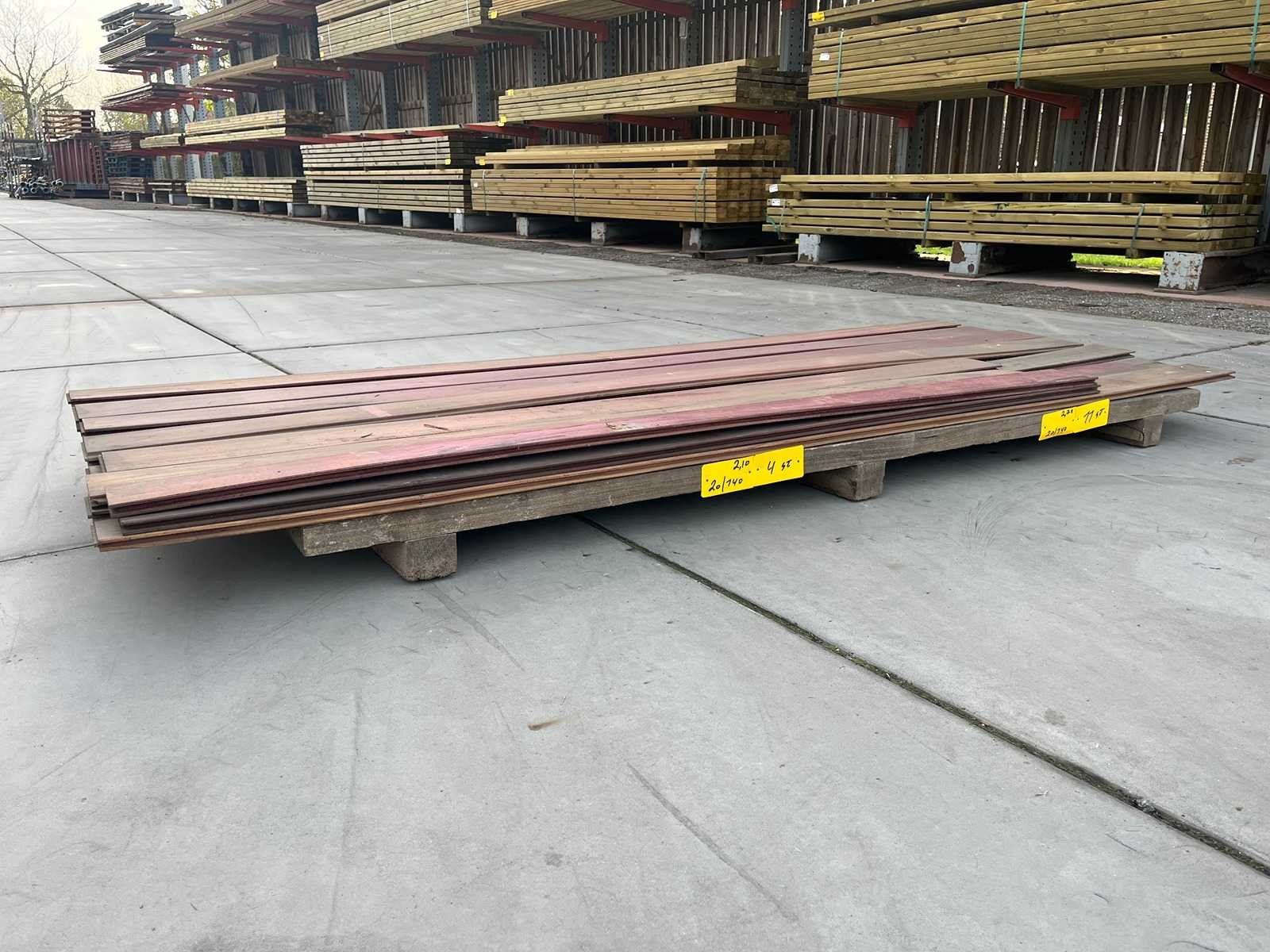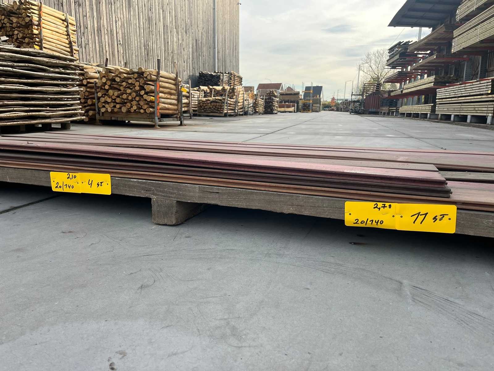 Purple heart gevelplanken. Te gebruiken als gevelbekleding. Dit lot bestaat uit 2 pakketten in 2 verschillende maten. Eerste pakket van 4 stuks met lengte 2,10m en breedte 140mm en dikte 20mm. Tweede pakket van 11 stuks met lengte 2,70m en breedte 140mm en dikte 20mm. Nee Merk: Purple Heart Houtsoort: Purple heart Materiaal: Hout Lengte: 270cm Breedte: 140mm Hoogte: 20mm Kleur: Bruin/paars