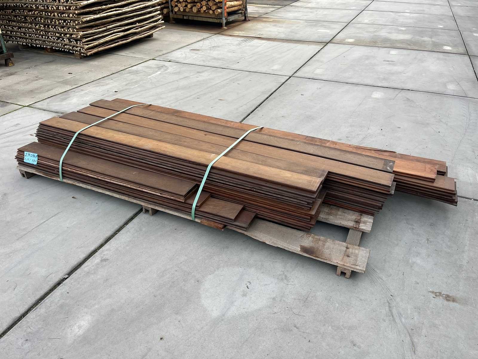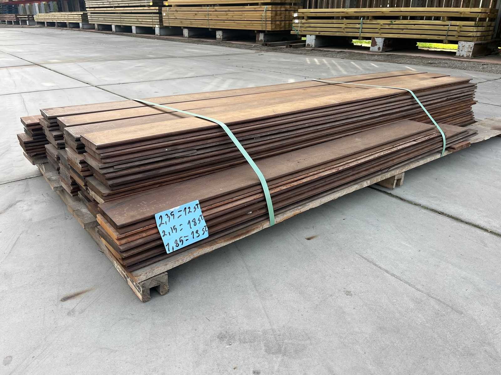D-deck terrasplanken Merbau. Te gebruiken voor het bekleden van een terras. Dit lot bestaat uit 3 pakketten in 3 verschillende lengte maten. Eerste pakket van 19 stuks met lengte 1,85m, tweede pakket van 18 stuks met lengte 2,15m en derde pakket van 12 stuks met lengte 2,35m. Alle planken hebben dezelfde breedte van 140mm en dikte van 21mm. Nee Merk: D-Deck Houtsoort: Merbau Materiaal: Hout Lengte: 2,35cm Breedte: 140mm Hoogte: 21mm Kleur: Bruin