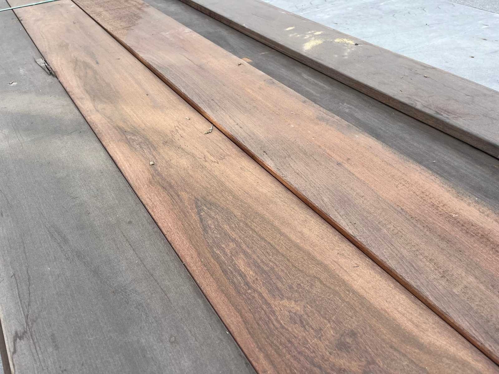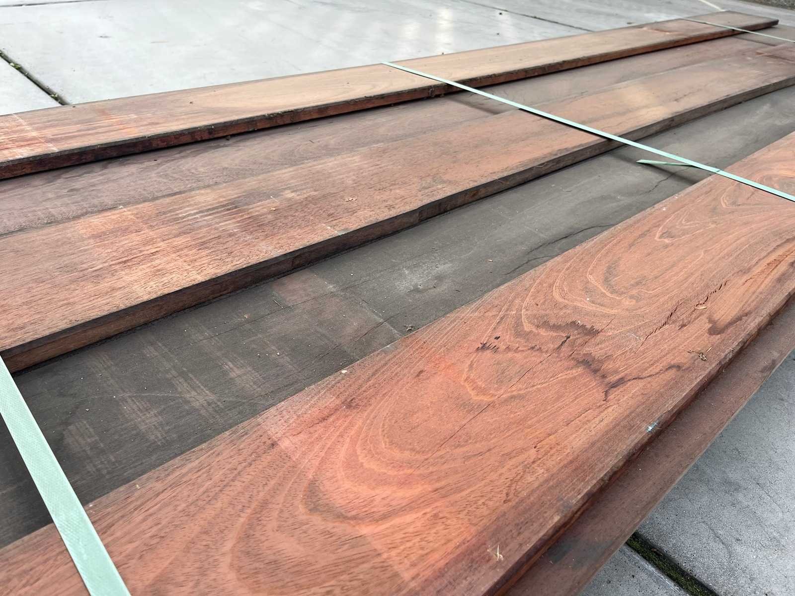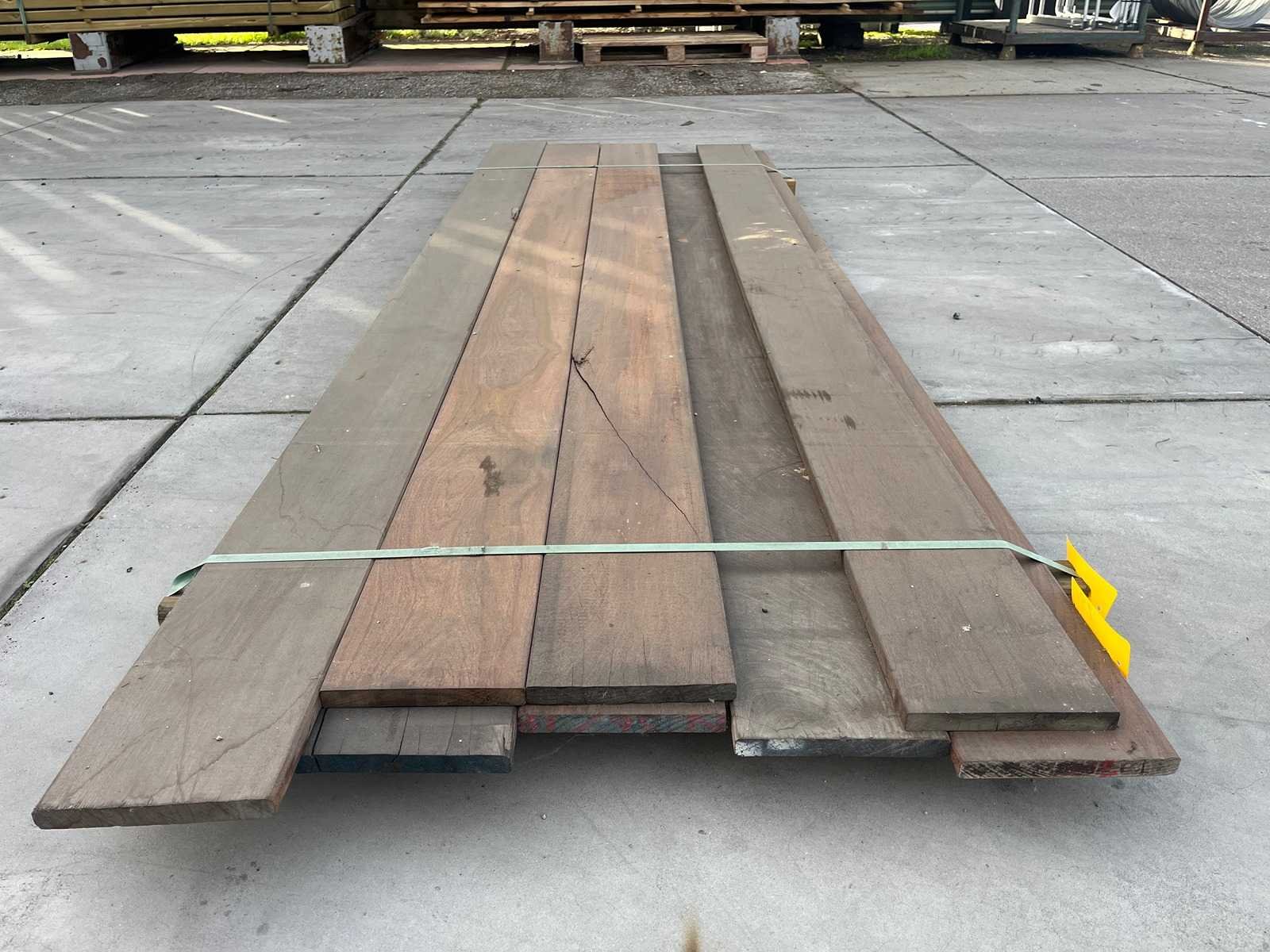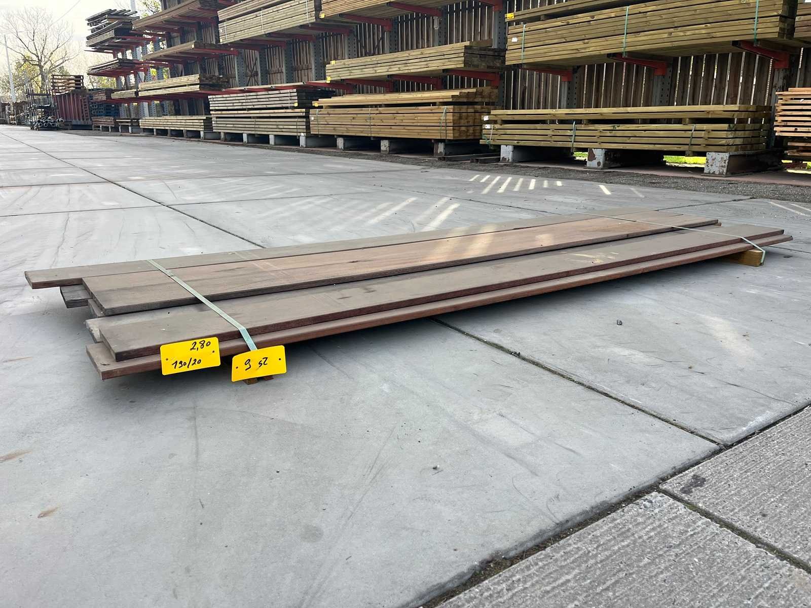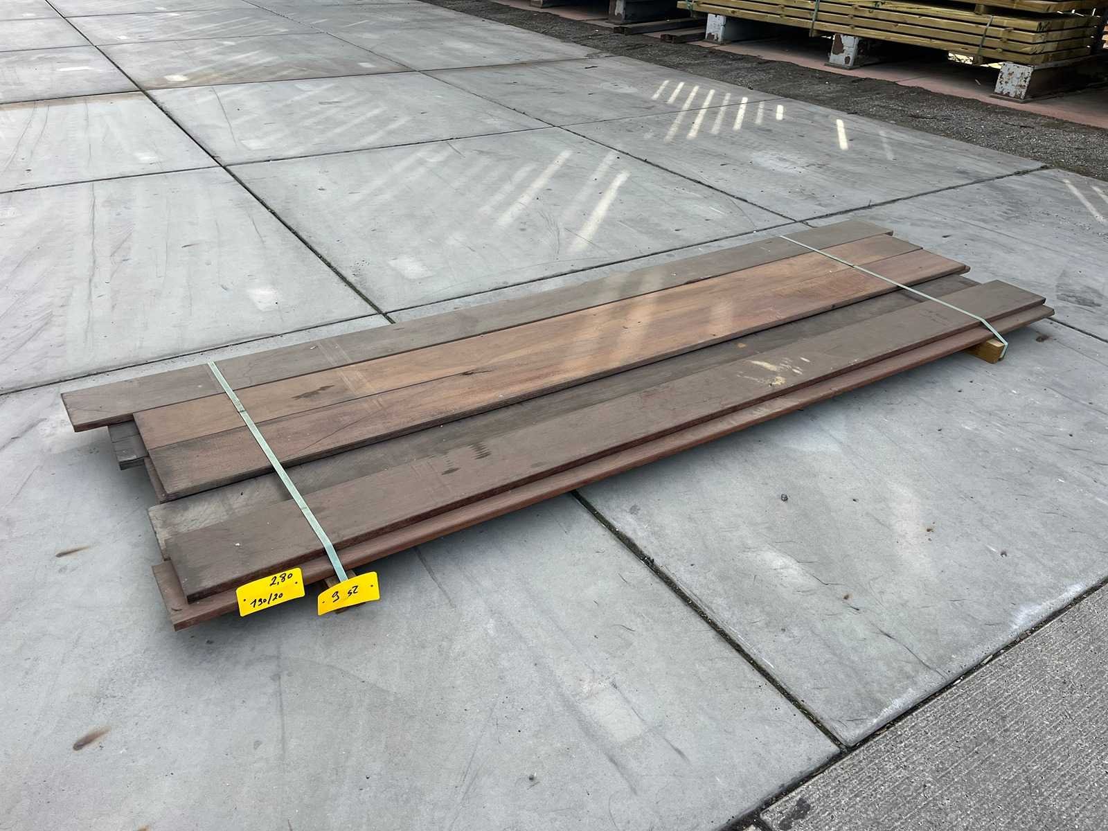 Cumaru Terrasplanken te gebruiken voor het bekleden van een tuinterras. Dit lot bestaat uit 2 pakketten met 2 verschillende lengtematen. Eerste pakket van 11 stuks met lengte 3,10m en tweede pakket van 9 stuks met lengte 2,80m. Alle planken hebben dezelfde breedte van 190mm en dikte van 20mm. Nee Merk: Cumaru Houtsoort: Cumaru Materiaal: Hout Lengte: 310cm Breedte: 190mm Hoogte: 20mm Kleur: Bruin