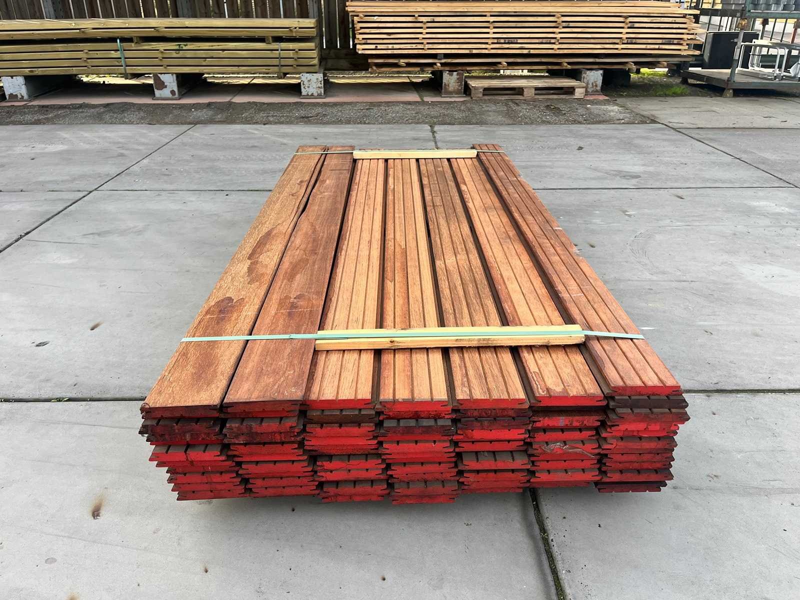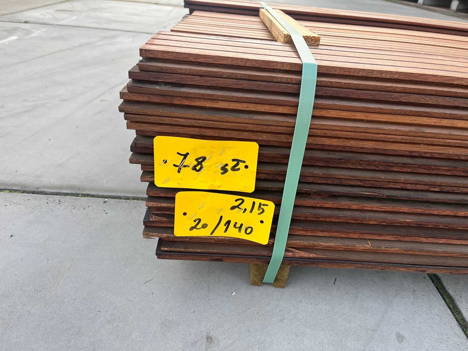 D-Deck terrasplanken Merbau te gebruiken voor het bekleden van een tuinterras. Dit lot bestaat uit een pakket van 78 stuks met lengte 2,15m en breedte 140mm en dikte 20mm. Nee Merk: D-Deck Houtsoort: Merbau Materiaal: Hout Lengte: 215cm Breedte: 140mm Hoogte: 20mm Kleur: bruin