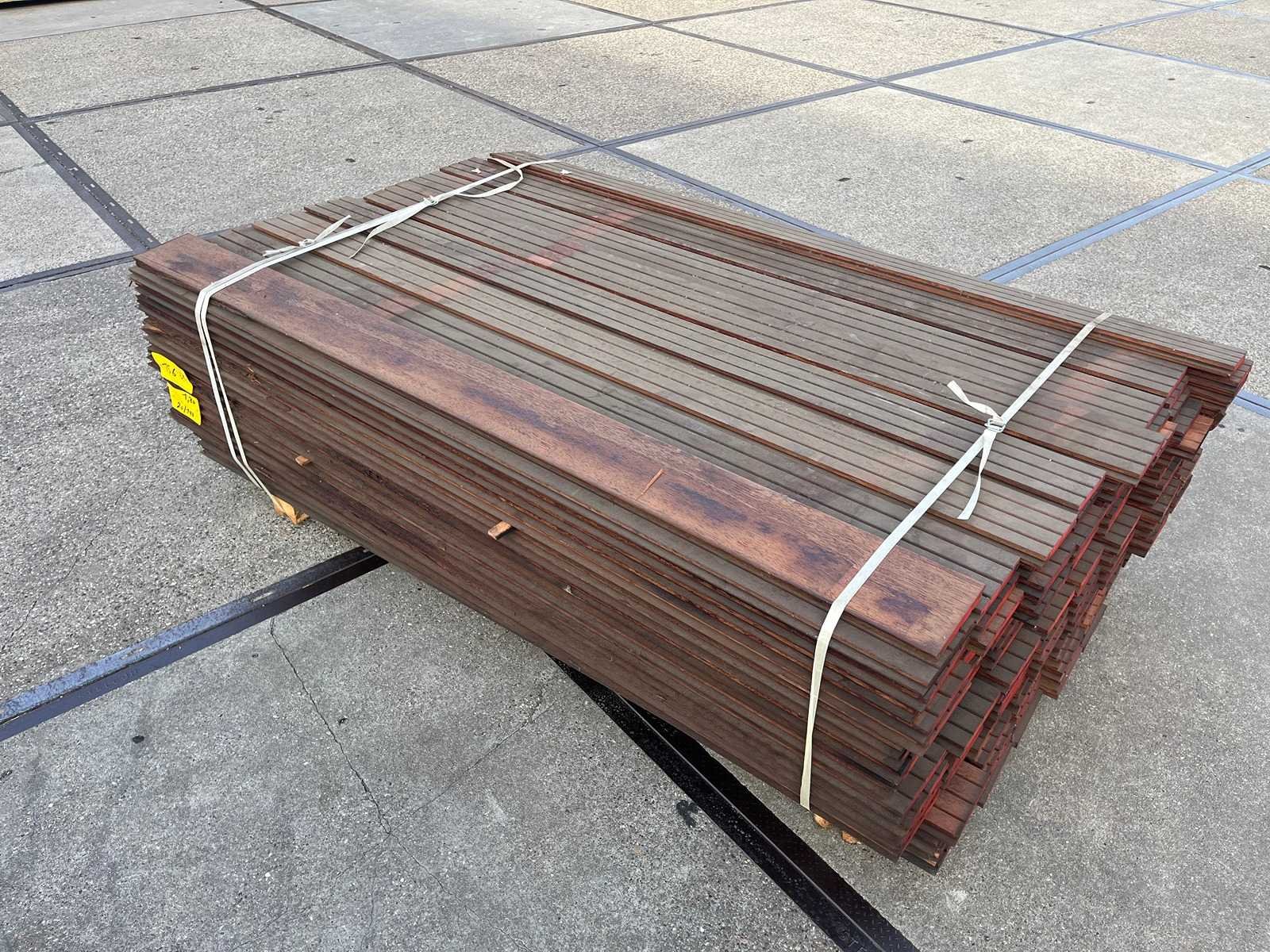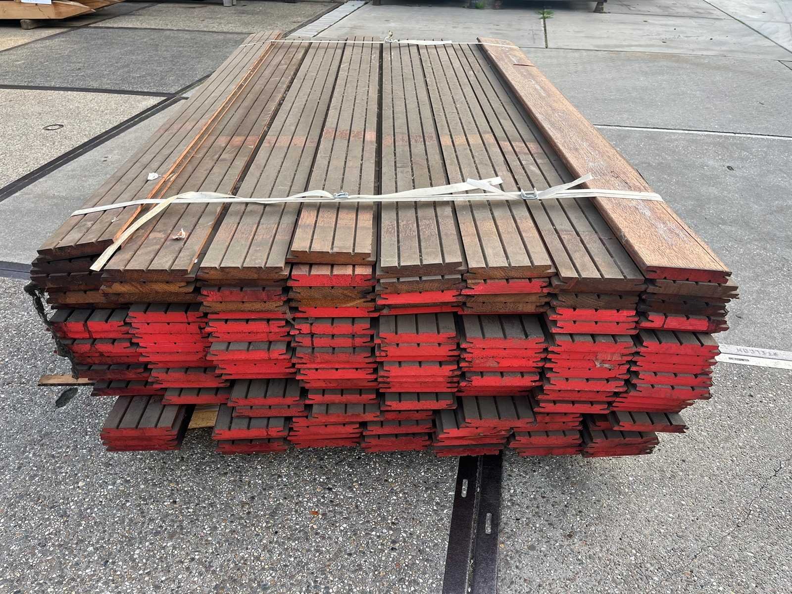 D-Deck terrasplanken Merbau te gebruiken voor het bekleden van een tuinterras. Dit lot bestaat uit een pakket van 156 stuks met lengte 1,80m en breedte 140mm en dikte 20mm. Nee Merk: D-Deck Houtsoort: Merbau Materiaal: Hout Lengte: 180cm Breedte: 140mm Hoogte: 20mm Kleur: bruin