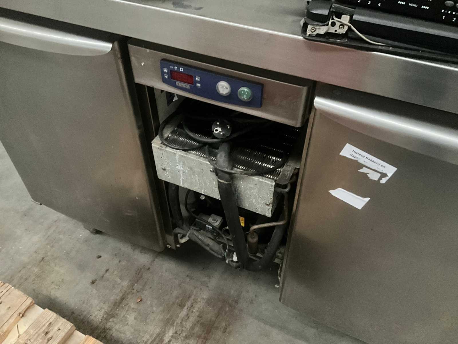 Rvs koelwerkbank voorzien van 2 laden en 2 klapdeuren Nee Merk: Electrolux Digitale uitlezing: true Ingebouwde koelcompressor: true Rvs: true Aansluiting: 230V Lengte: 176cm Breedte: 70cm Hoogte: 90cm