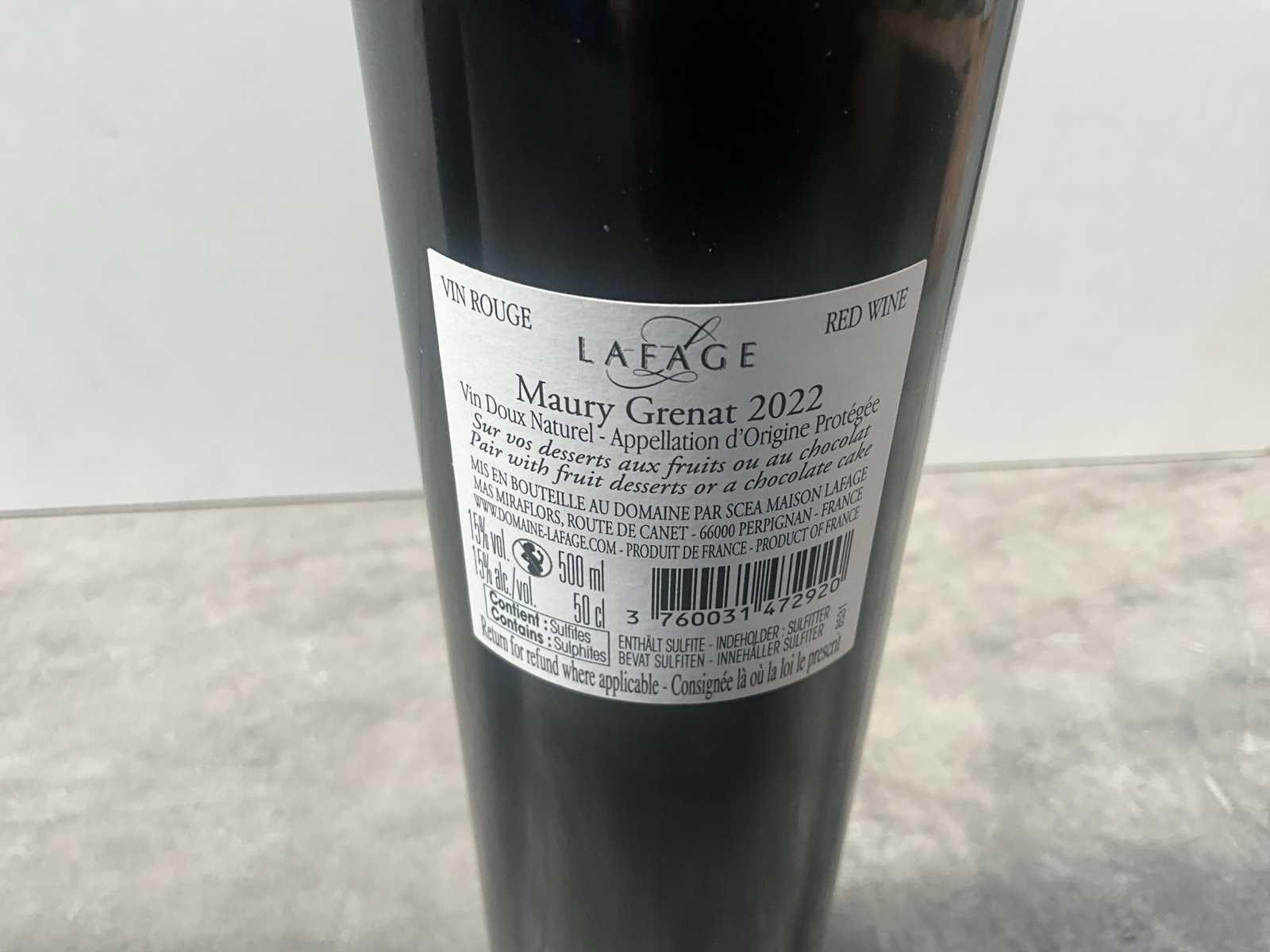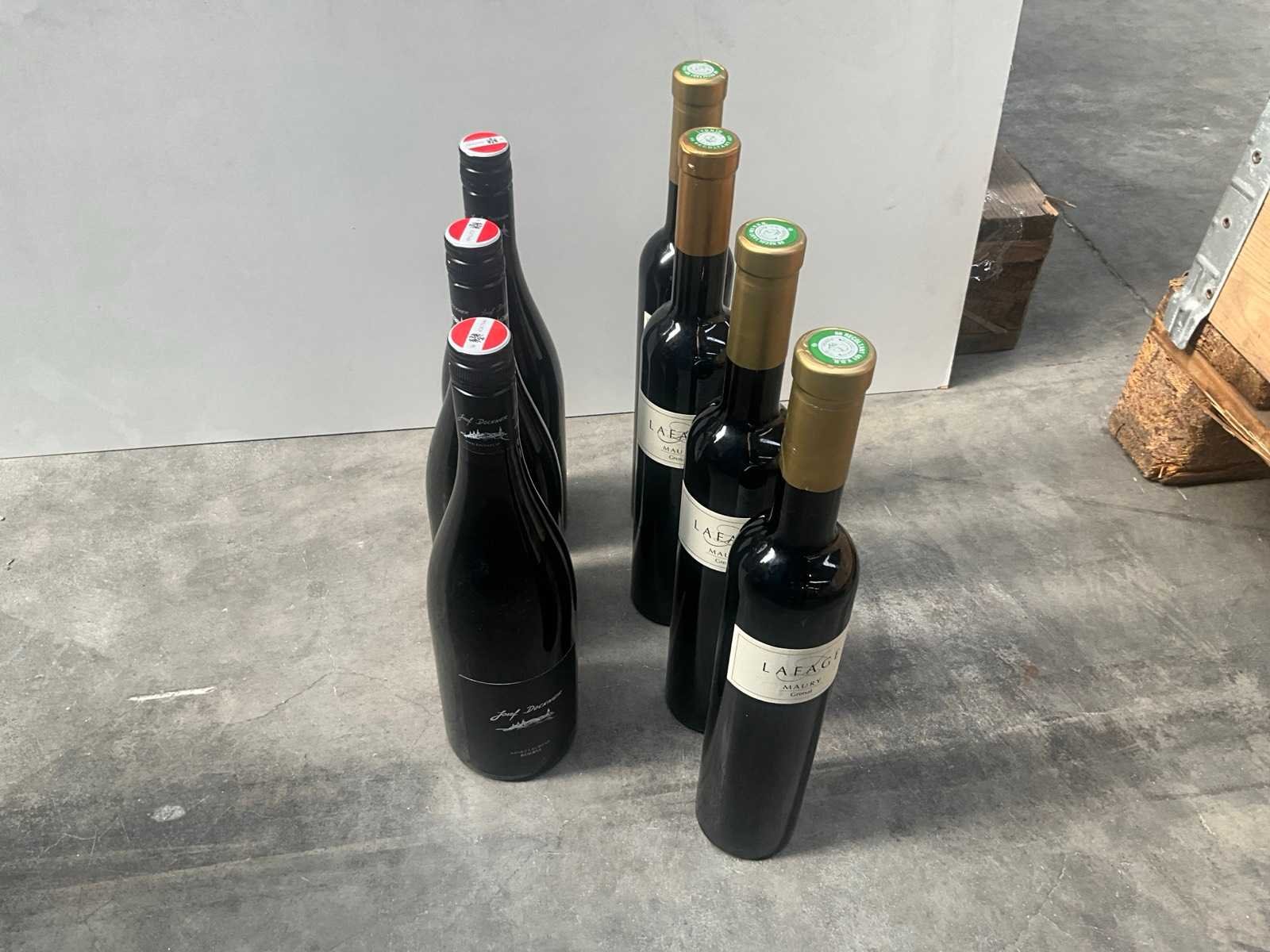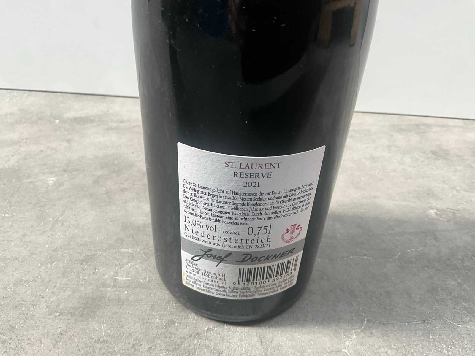 Waaronder 3x Josef Dockner Sankt Laurent reserve 2021 van 75 cl en 4x Lafage Maury Grenat 2022 van 50 cl. Nee Verpakt per: Losse flessen