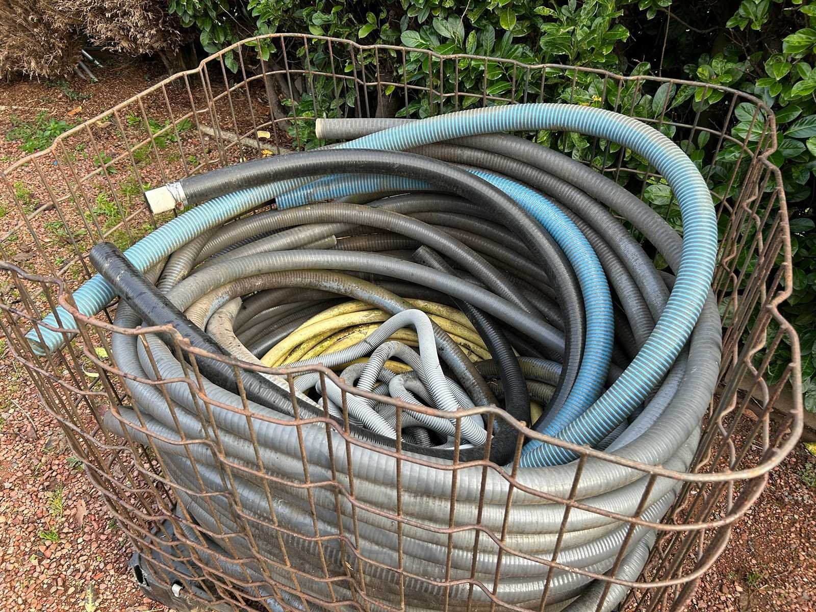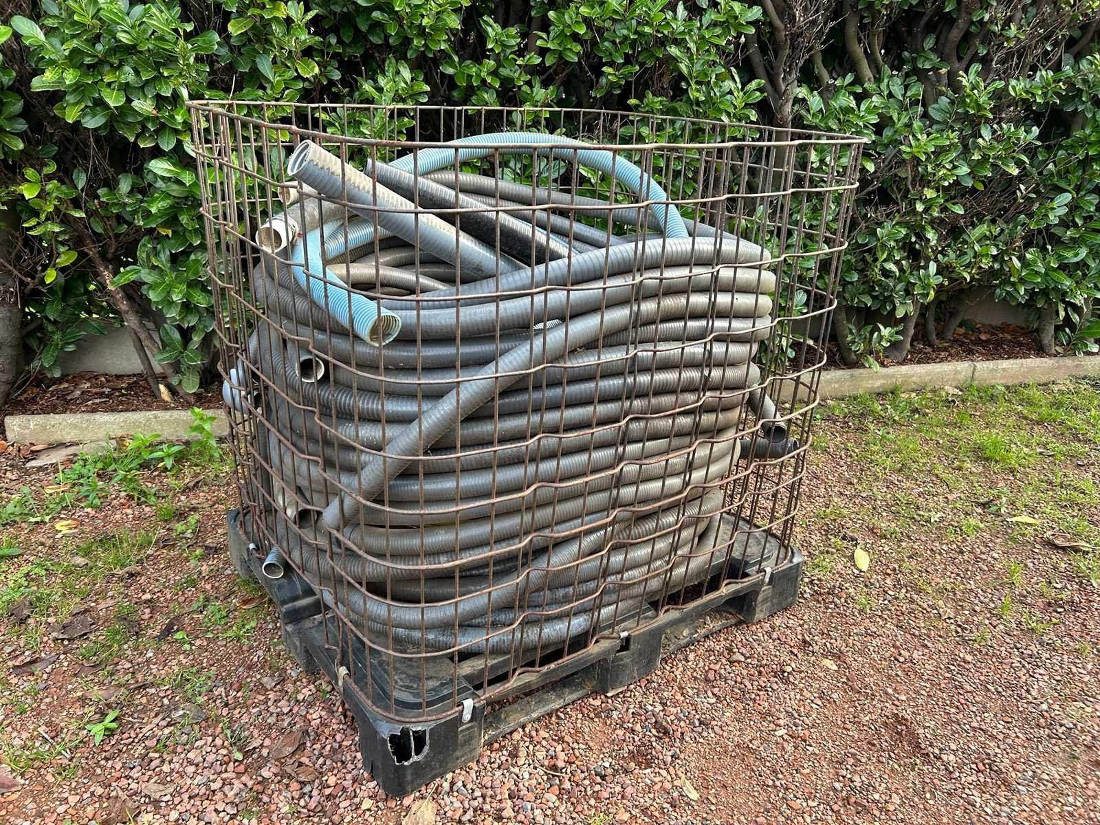 Palletkooi met verzameling slangen - afmetingen 1200 x 1000 x 1175 - zonder verdere gegevens, staat onbekend - geen hef- en/of transportmiddelen aanwezig op locatie. No Afmeting l: 1200mm Afmeting b: 1000mm Afmeting h: 1175mm