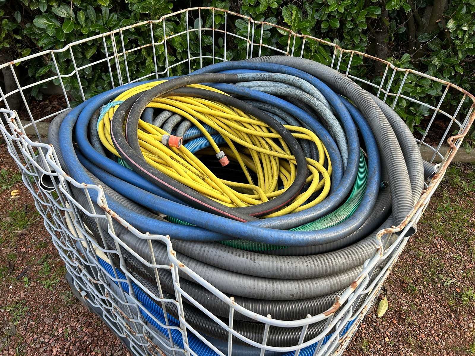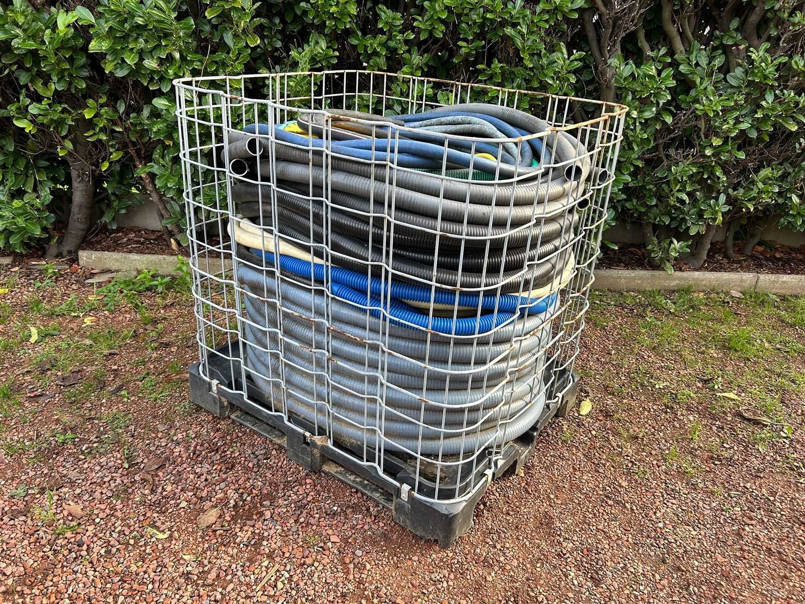 Palletkooi met verzameling slangen - afmetingen 1200 x 1000 x 1175 - zonder verdere gegevens, staat onbekend - geen hef- en/of transportmiddelen aanwezig op locatie. No Afmeting l: 1200mm Afmeting b: 1000mm Afmeting h: 1175mm