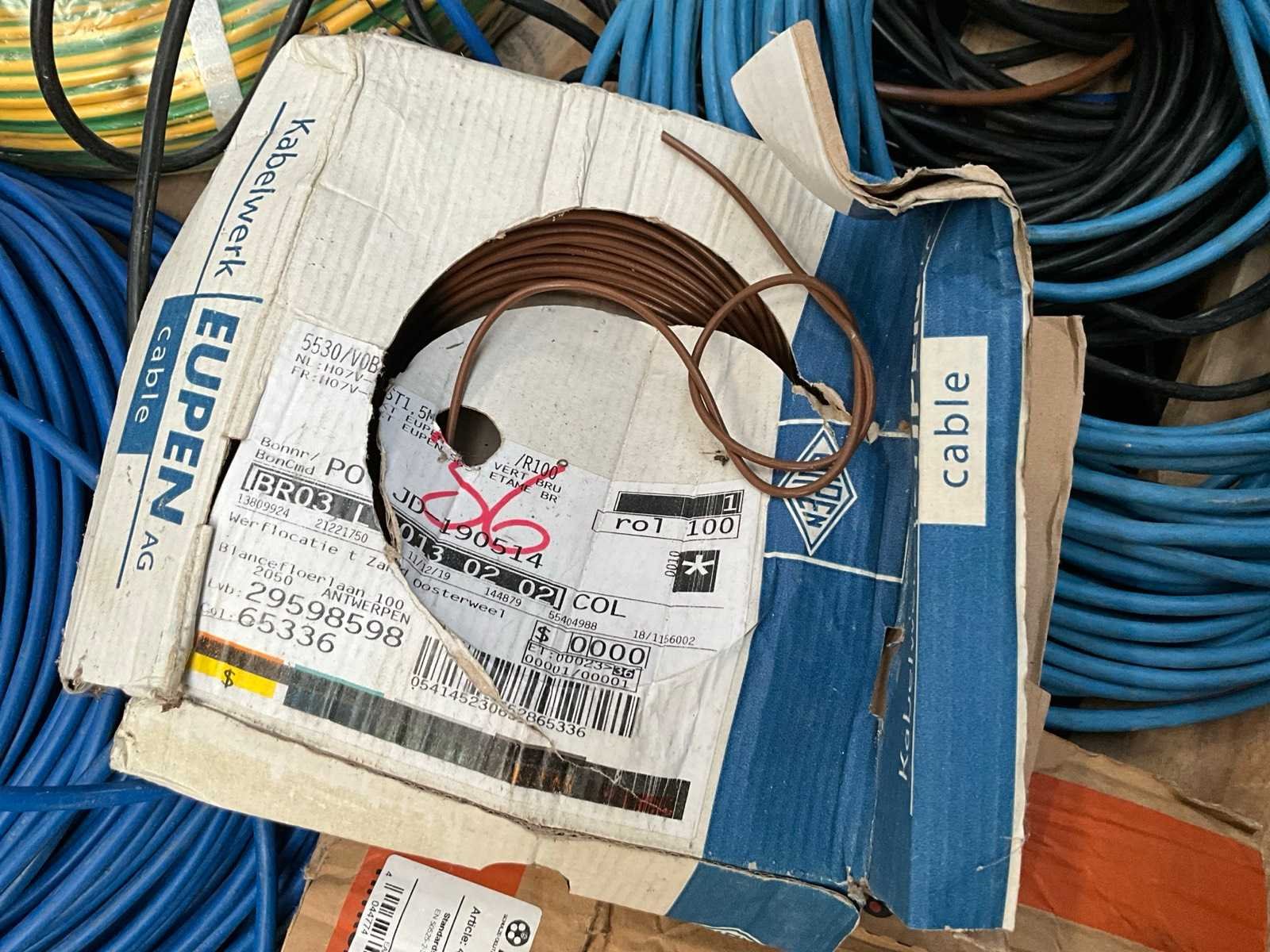 Waaronder 100m H07V2-K, 2x 100m CAE HP Plat en diversen. Waaronder aangesproken. Nee