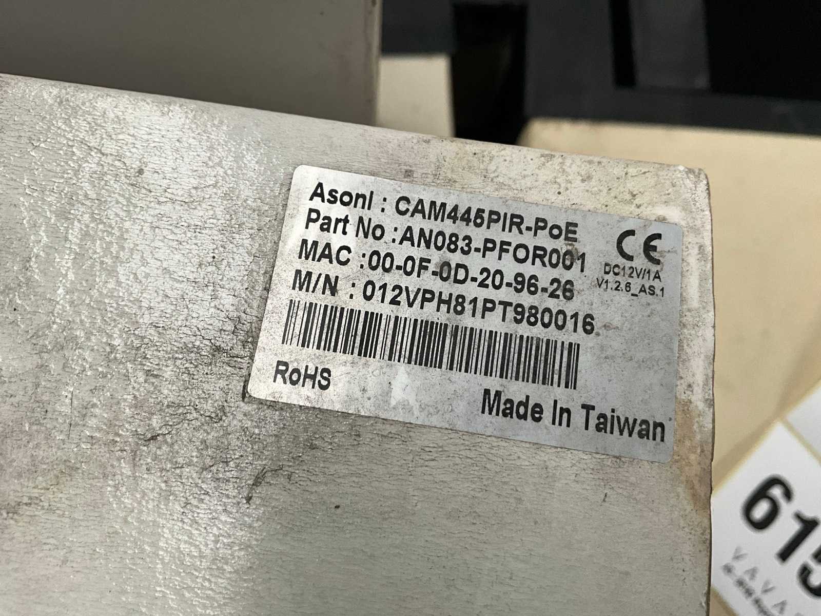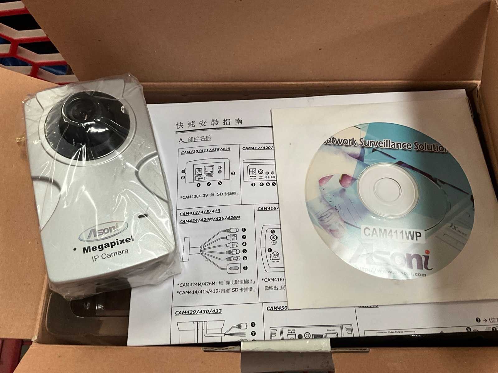 Waaronder 1x Samsung SCB-2001, 4x Asoni IP Camera, 2x Acti D62A, 2x Asoni Cam436P, 1x mini-speed dome camera, 1x Mid-speed dome camera, 1x Asoni cam414, 1x Asoni Cam445 Nee