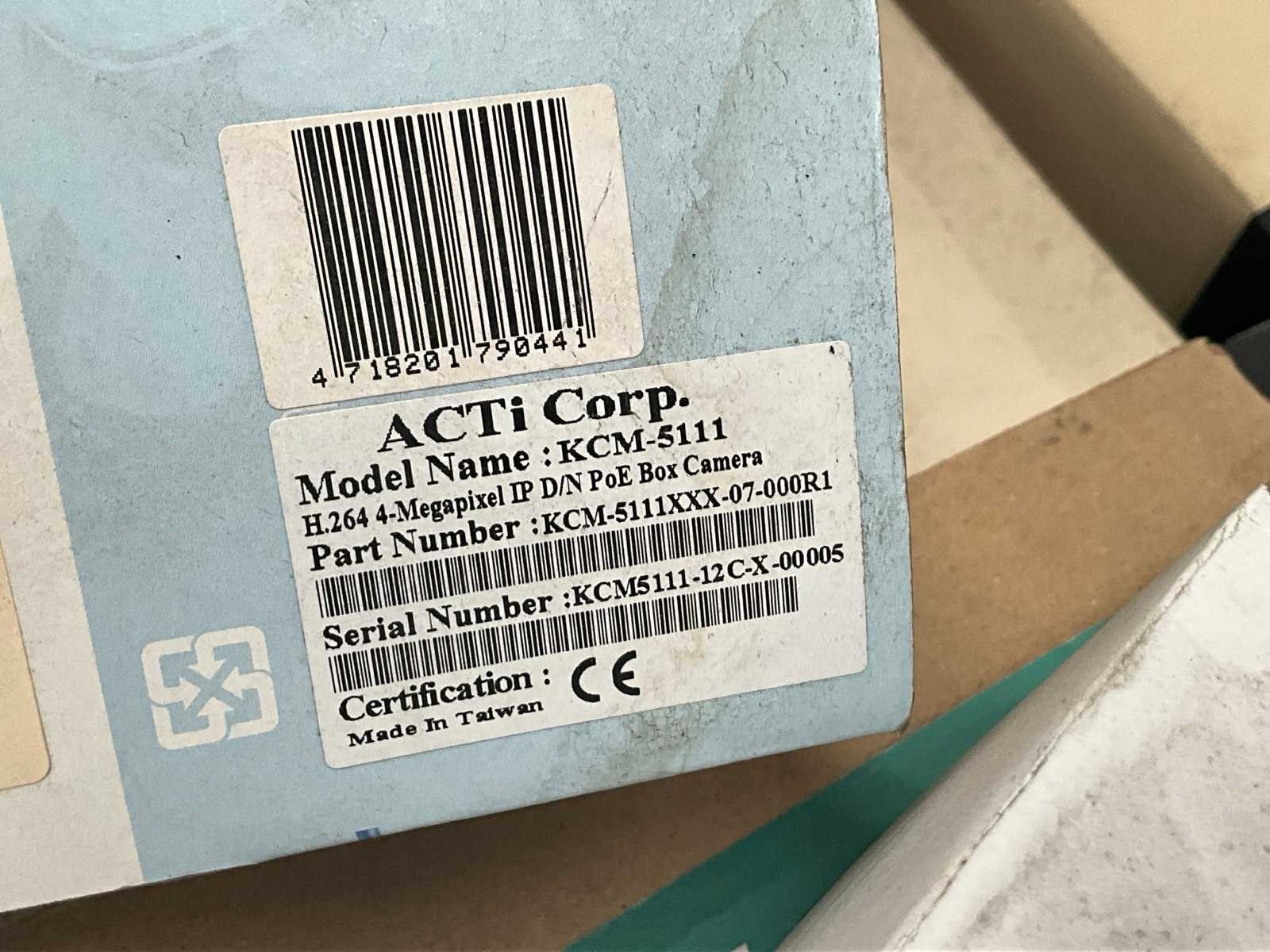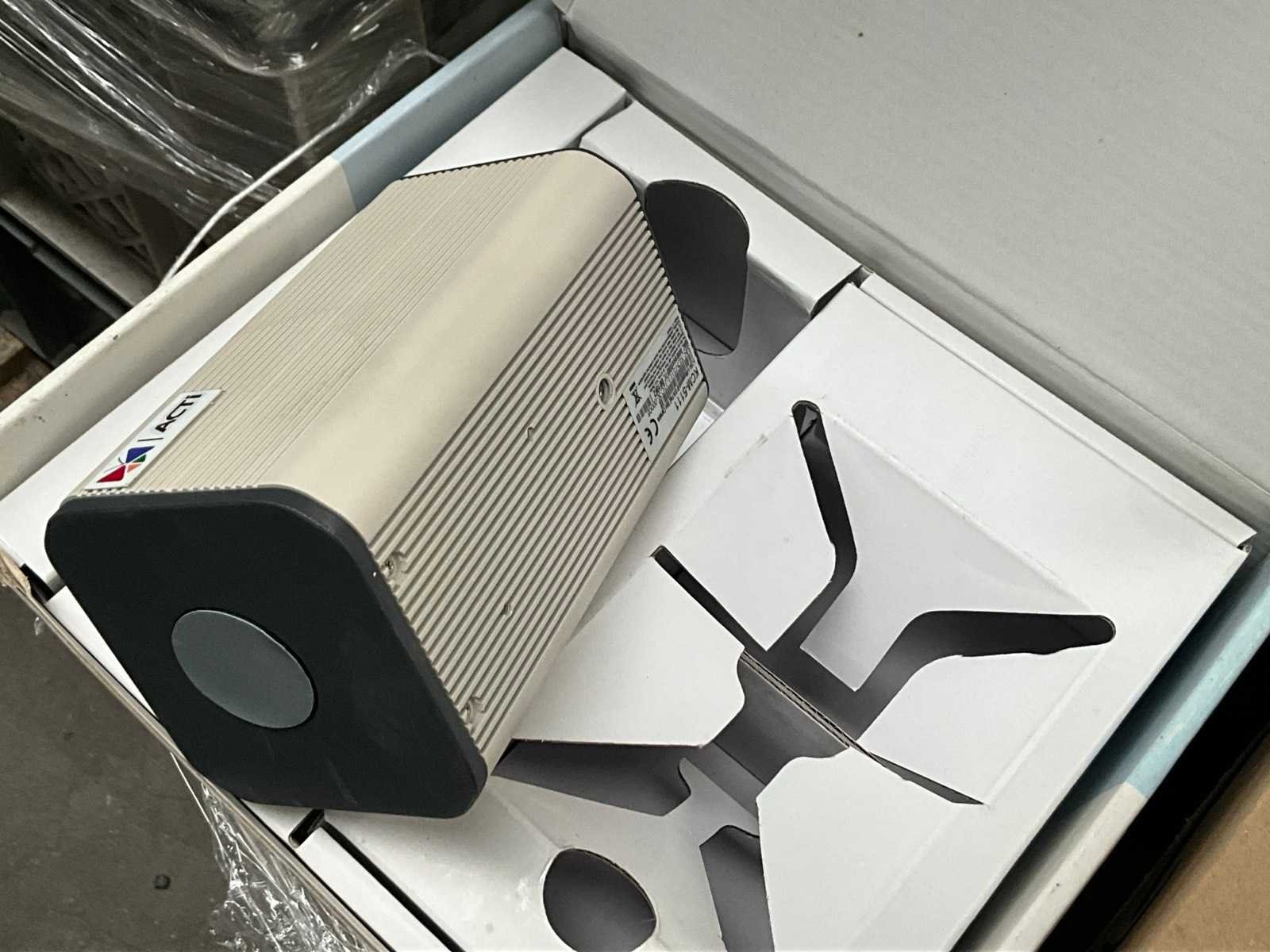 Waaronder 2x ECD-1000, 1x TCD-2100, 1x KVM-5111 Box Camera en diversen. Liggende in 7 dozen. No Merk: ACTi