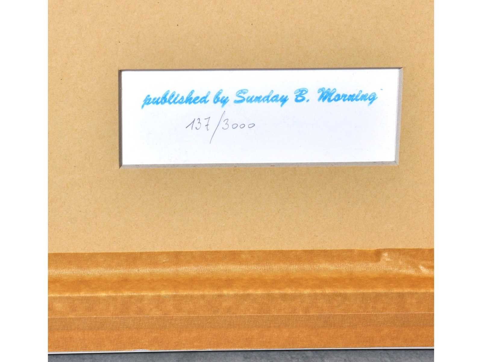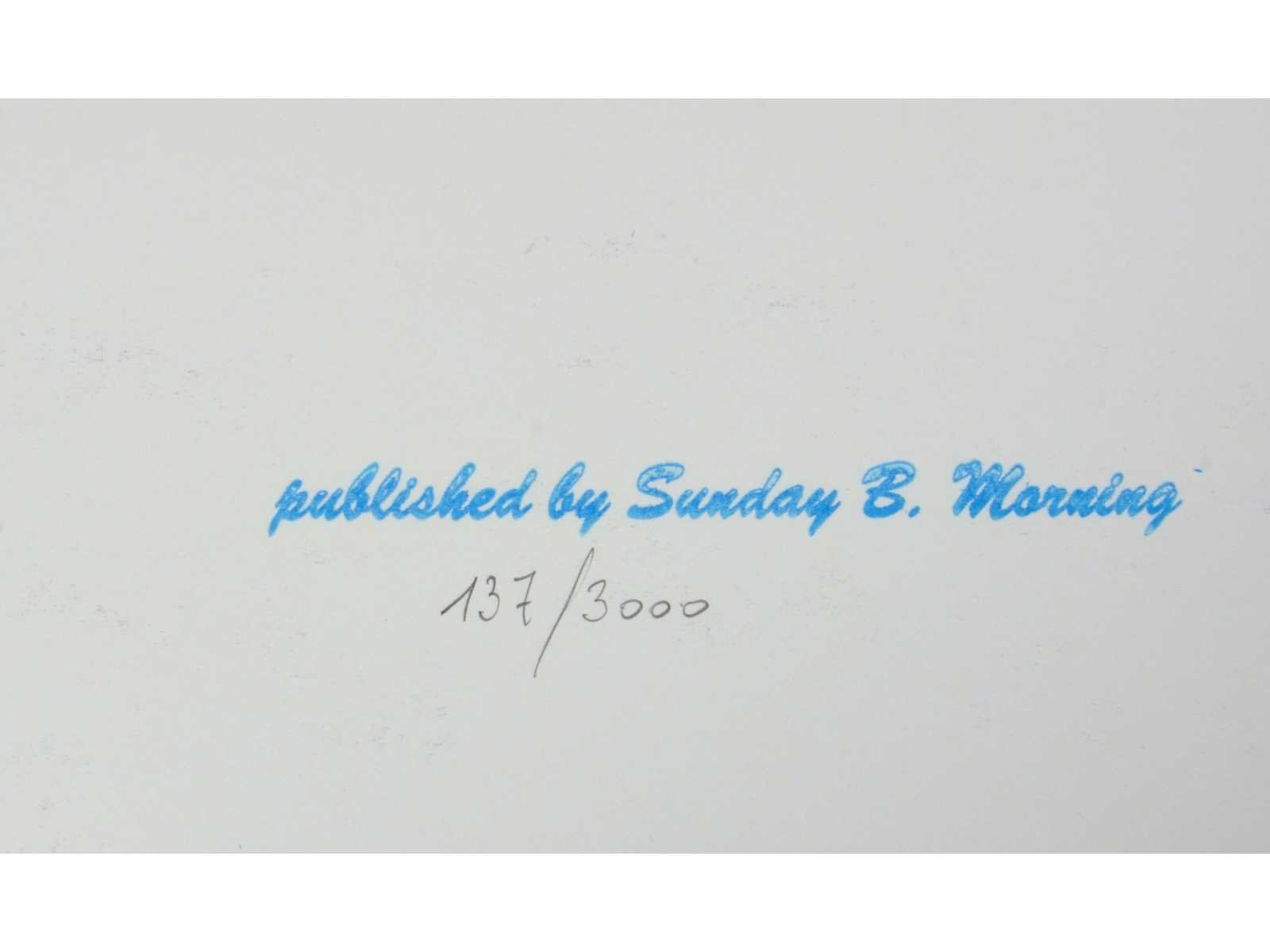 Original Sunday b. Morning edition, Fill in your own signature - gedrukt met de hoogste kwaliteit archiefinkten - met de hand genummerd - verso gestempeld - Top ingelijst - Puntgave staat - met certificaat van echtheid Nee Kunstenaar: Andy Warhol (naar) Titel van werk: Moonwalk Periode: 1996 Techniek: kleurenzeefdruk Materiaal: op museumkarton Handtekening/oplage: false Oplage: 137/3000 Hoogte: 97cm Breedte: 97cm Frame: true