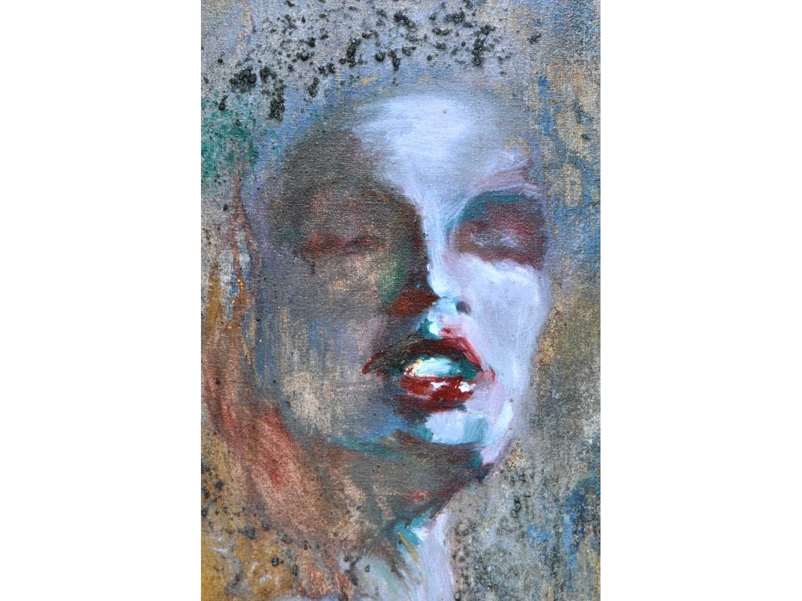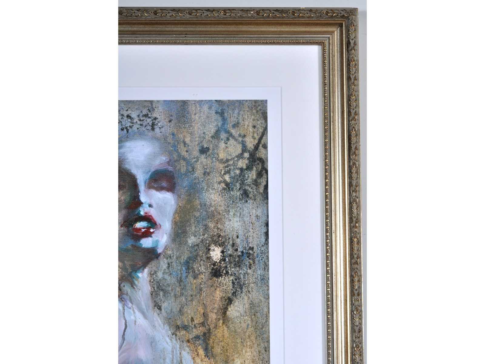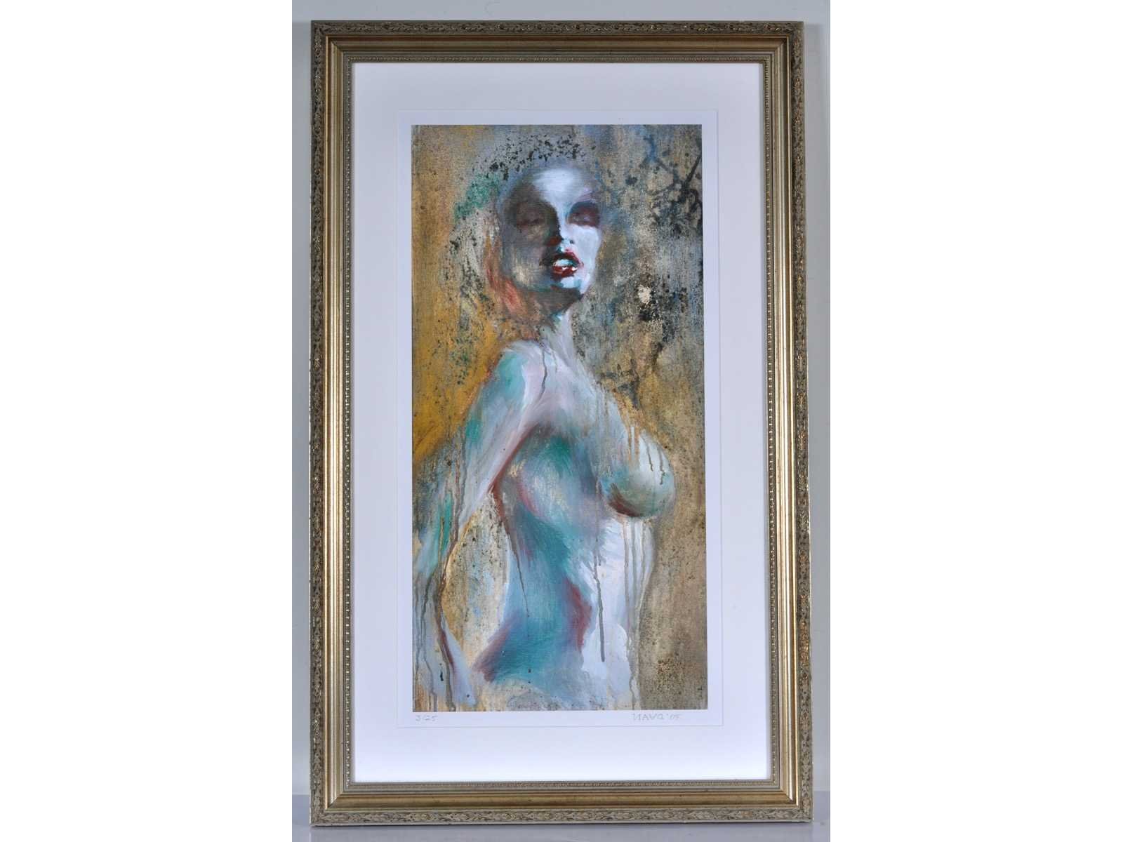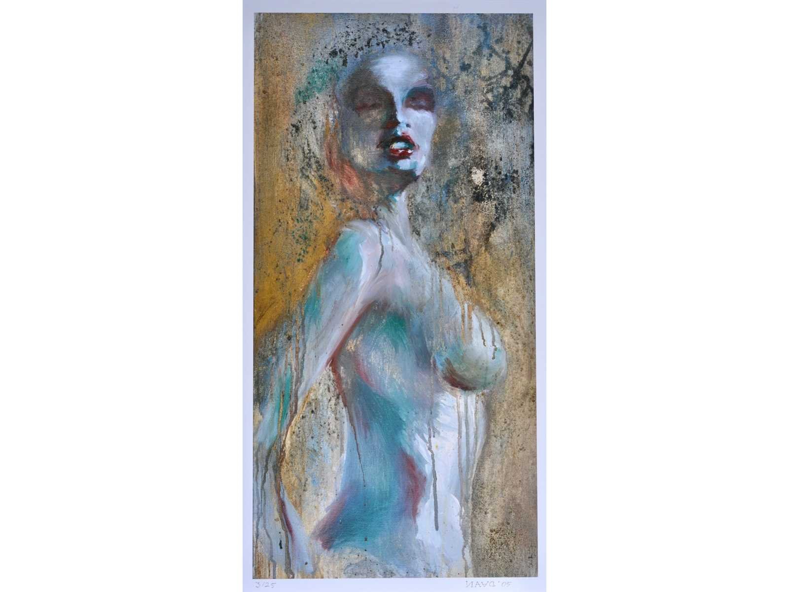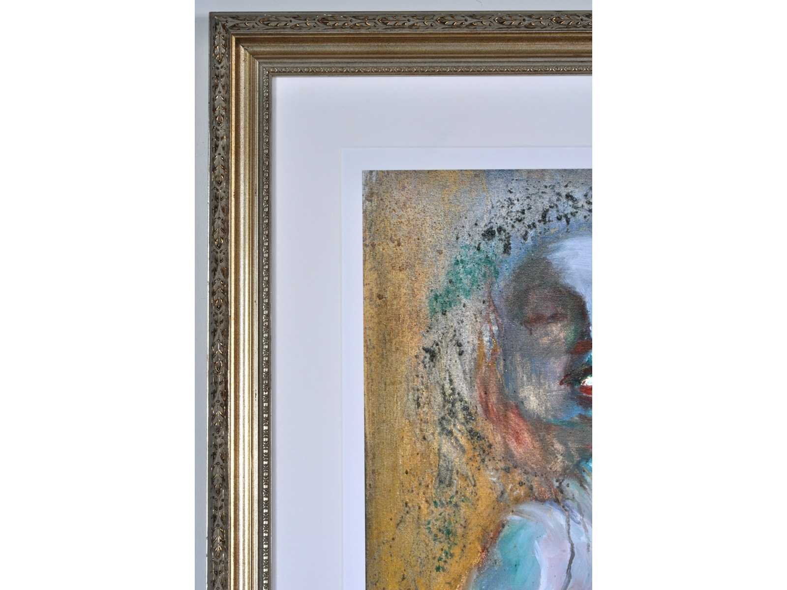 Expressief portret van een vrouw in blauw- en goudtinten - professioneel ingelijst met museumglas Nee Kunstenaar: Daan Titel van werk: Zijlings naakt Datering: 2005 Techniek: kleurenlithografie Handtekening/oplage: true Oplage: 3/25 Gesigneerd: getekend en genummerd Hoogte incl. lijst: 60cm Breedte incl. lijst: 30cm Frame: true