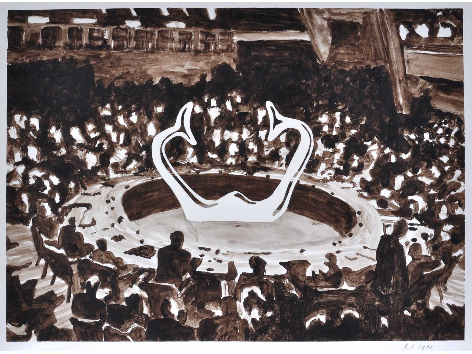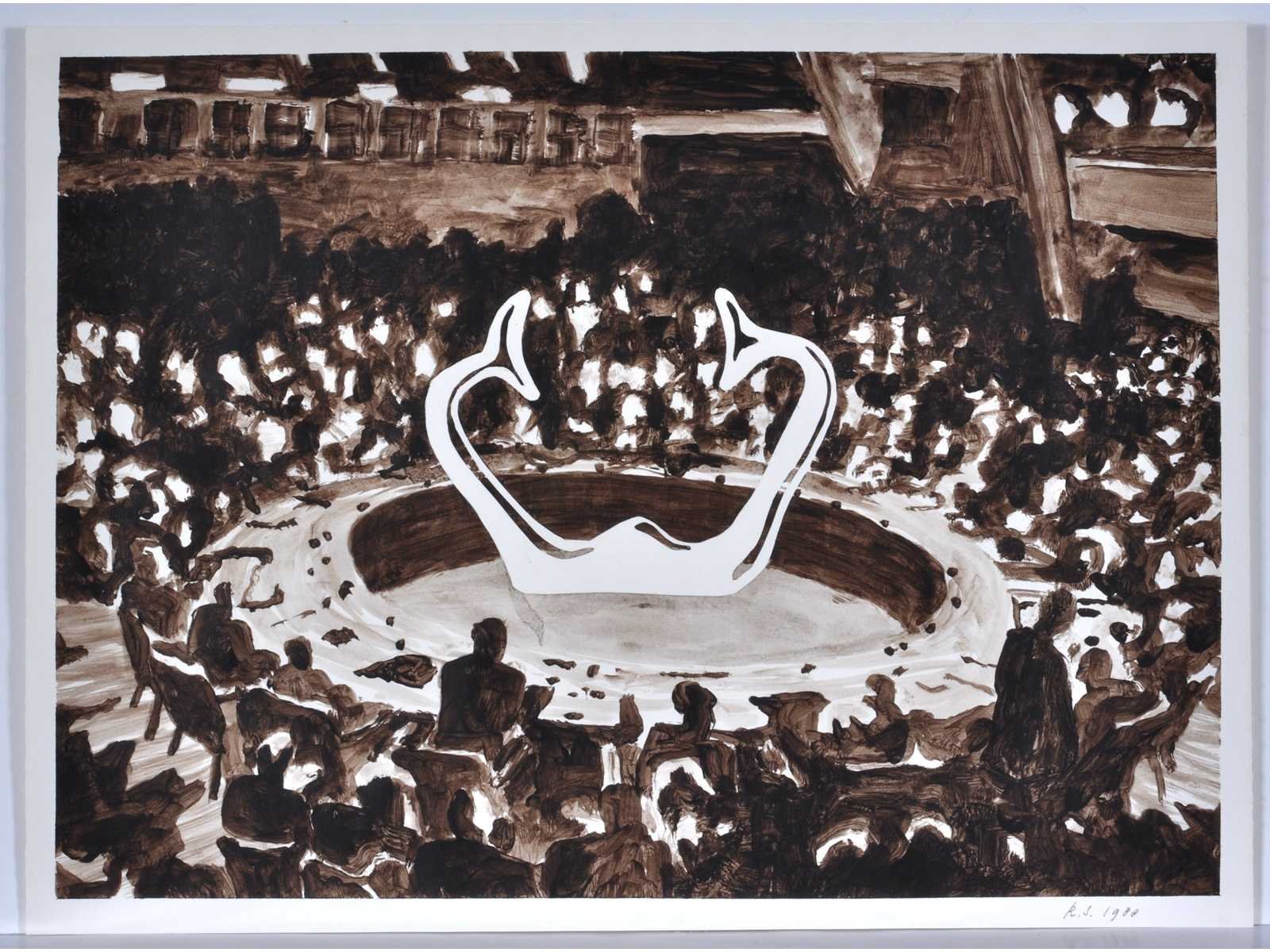 Roland Sips was een Nederlandse beeldend kunstenaar en illustrator. Hij stond bekend om zijn zwart-wit penseeltekeningen, airbrushtechnieken en grafisch werk. Hij maakte illustraties voor onder andere NRC, Vrij Nederland en Hollands Maandblad, en gaf boeken uit in eigen beheer, zoals "Fatale Filatelie" (1984) en "Stofomslag / Omslag van stof" (1992). Zijn werk werd geëxposeerd in onder meer het C.B.K. Hengelo, de Rijksakademie in Amsterdam en PlaatsMaken in Arnhem. Nee Kunstenaar: Roland SIPS (Borne, 1954 - 2012) Titel van werk: The gathering Datering: 1980 Techniek: Aquarel Handtekening/oplage: true Gesigneerd: Gesigneerd en gedateerd Hoogte: 45cm Breedte: 61cm Frame: true