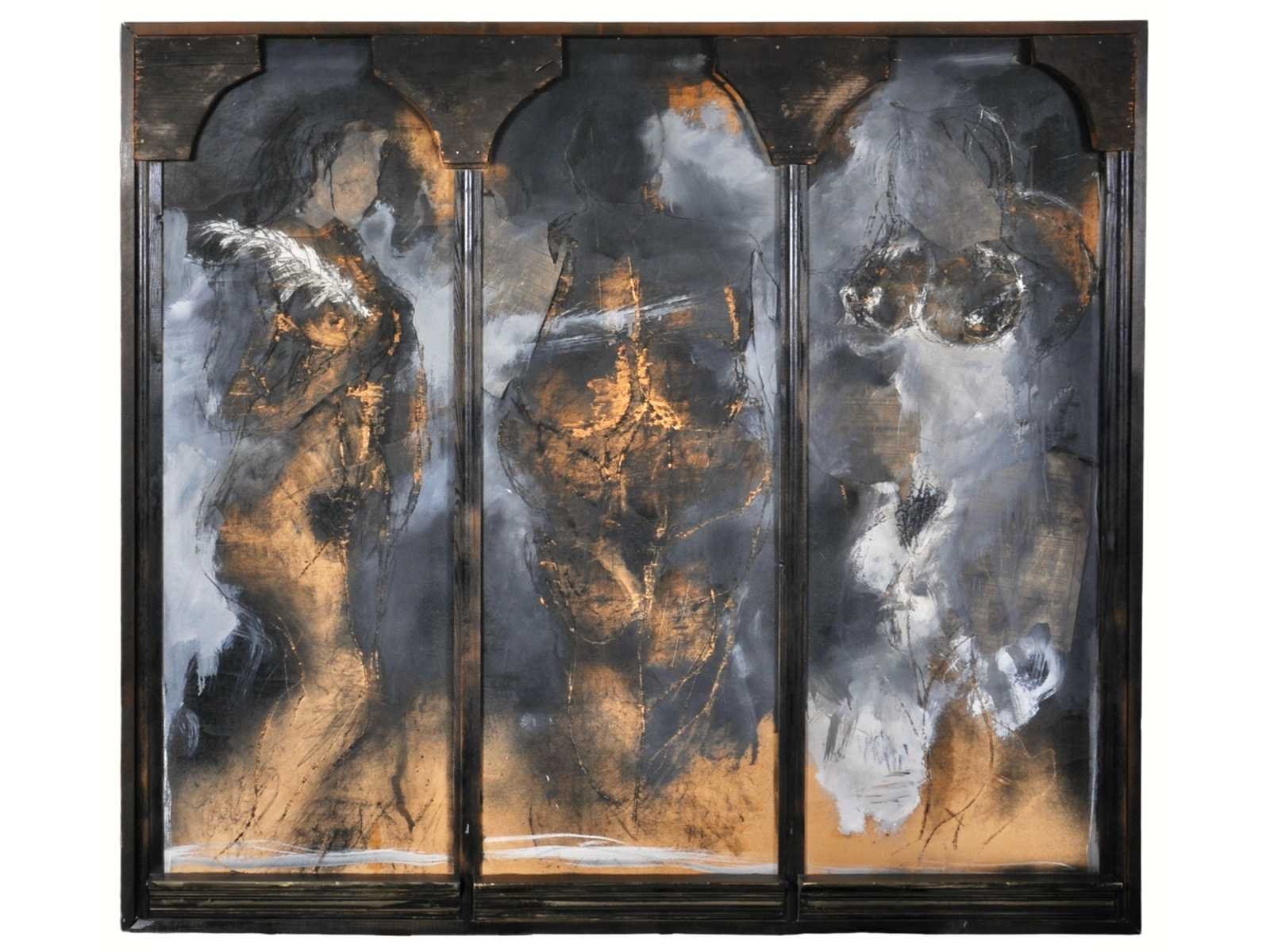 Onleesbaar signatuur - 3 gratiën - gemengde techniek - 126x141 cm