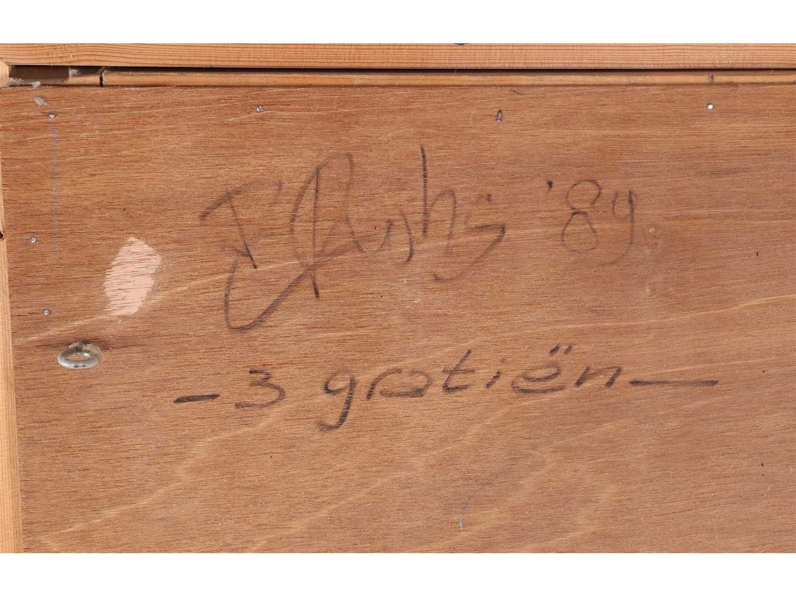 Prachtig hedendaags driedimensionaal werk - voor ons helaas onleesbaar signatuur Nee Kunstenaar: Onleesbaar signatuur Titel van werk: 3 Gratiën Datering: 1989 Techniek: Gemengde techniek op paneel Handtekening/oplage: true Gesigneerd: Gesigneerd, gedateerd en betiteld Hoogte incl. lijst: 126cm Breedte incl. lijst: 141cm Frame: true