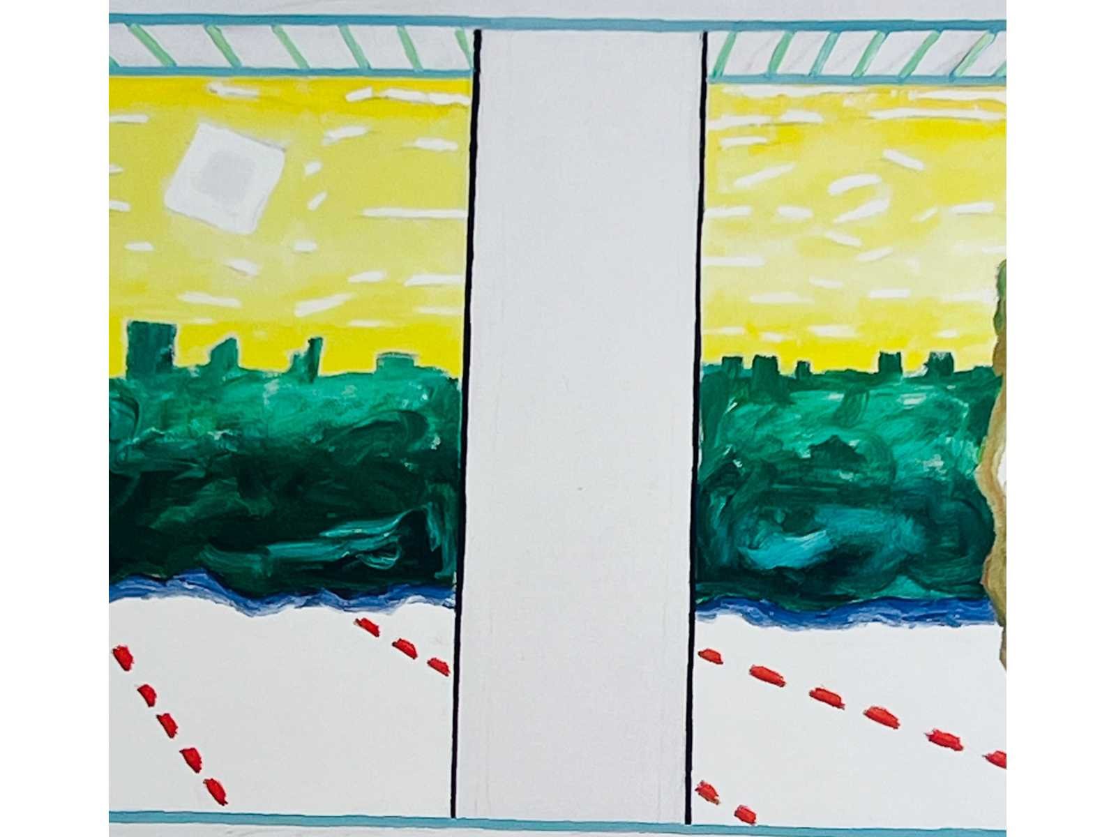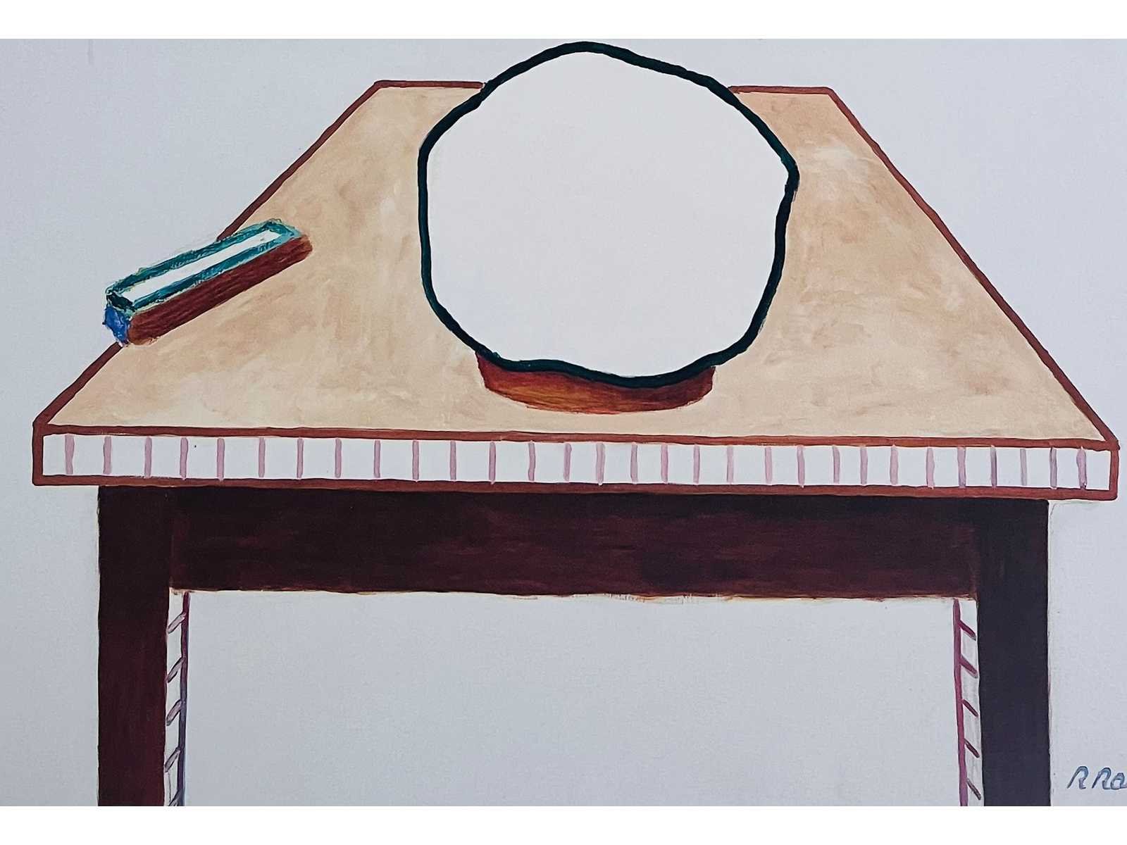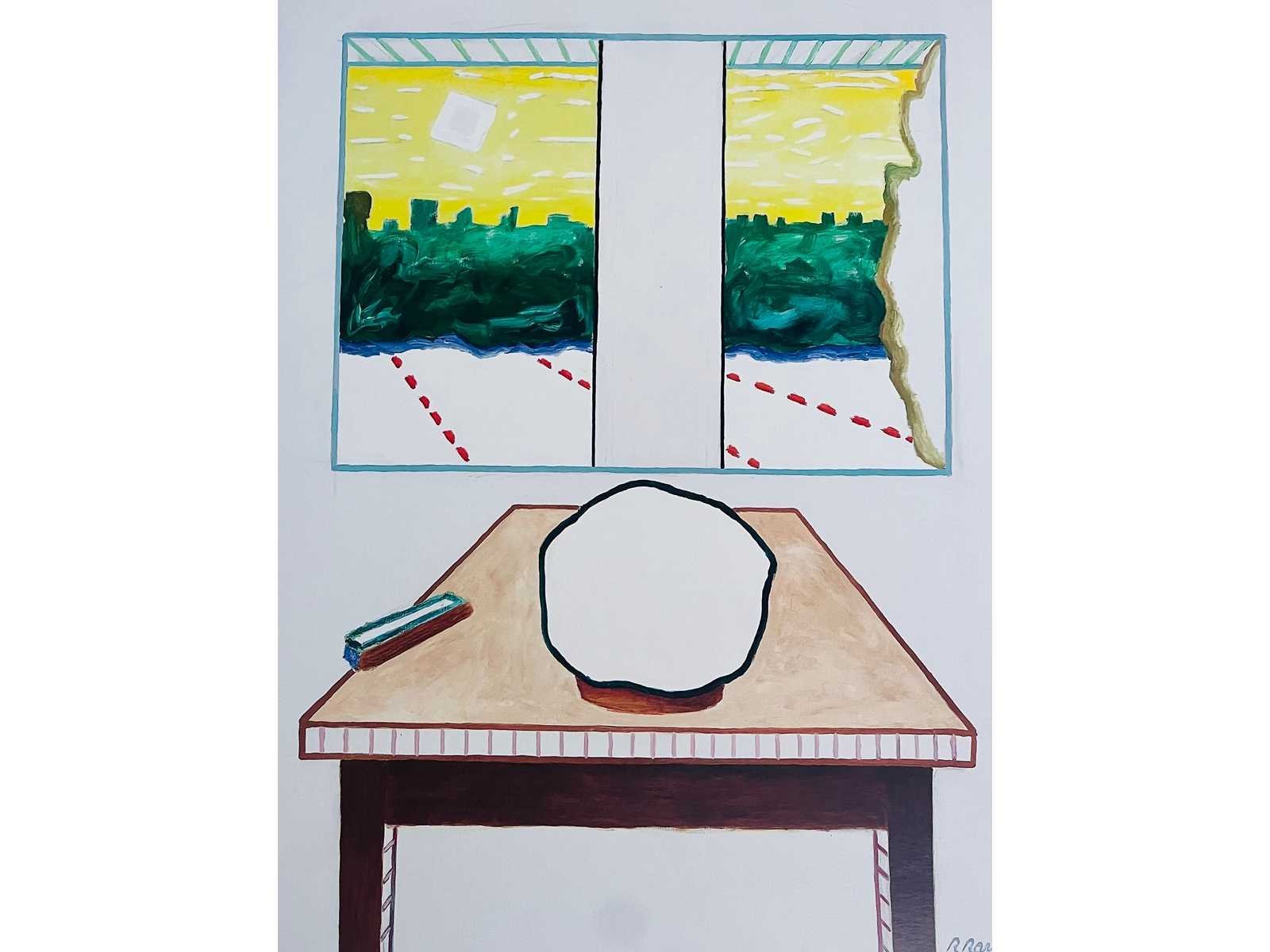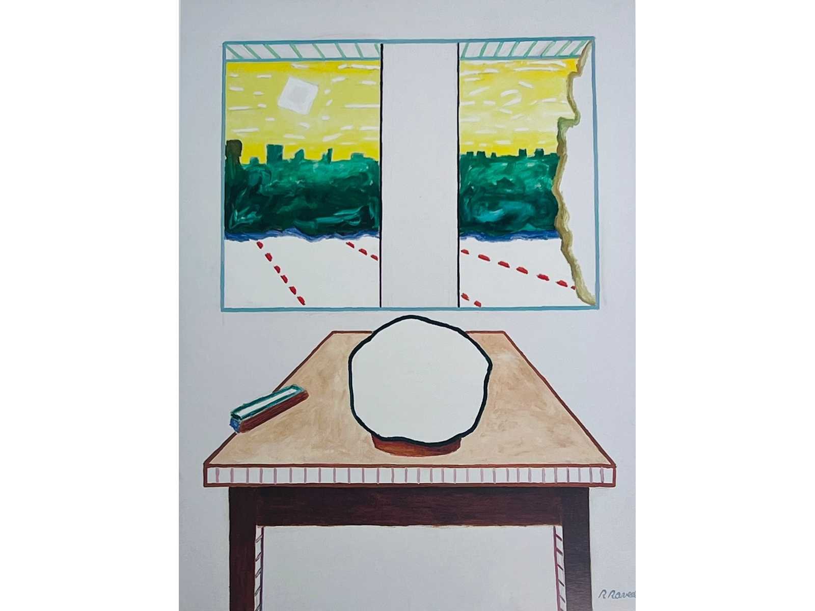 Een leegte aan een venster met een verticale aanwezigheid - mooie offset uitgebracht op slechts 500 exemplaren ter gelegenheid van de tentoonstelling "De Wereld van Roger Raveel" in de lokettenzaal van het Vlaams Parlement te Brussel - Afmetingen 24x34 cm – ingelijst met passe-partout 30x40 cm No Titel van werk: Een leegte aan een venster met een verticale aanwezigheid Techniek: offset Oplage: 500 Hoogte incl. lijst: 40 Breedte incl. lijst: 30 Frame: true