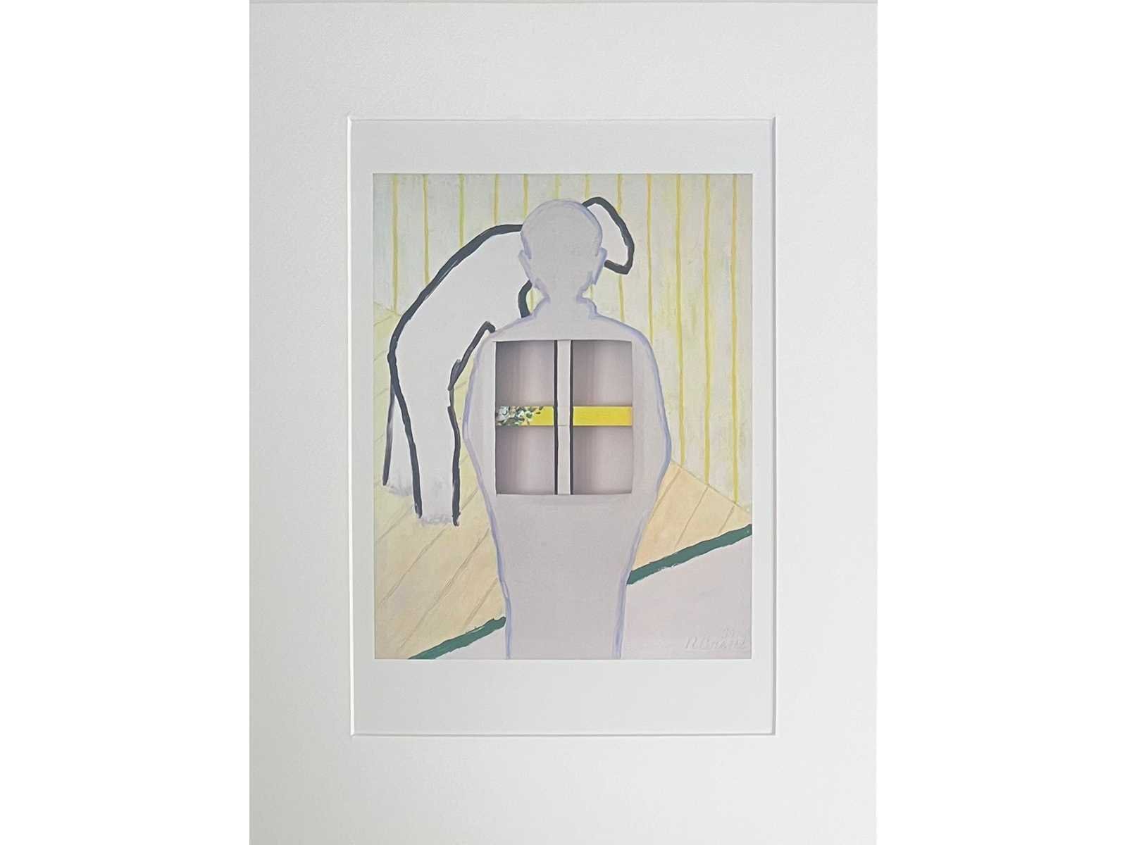 Vader en zoon - offset uitgebracht op 500 exemplaren ter gelegenheid van de tentoonstelling "De Wereld van Roger Raveel" in de lokettenzaal van het Vlaams Parlement te Brussel – ingelijst met witte passe-partout (30x40 cm) No Kunstenaar: Roger Raveel Titel van werk: Vader en zoon Techniek: offset Oplage: 500 Hoogte: 40cm Breedte: 30cm Frame: true