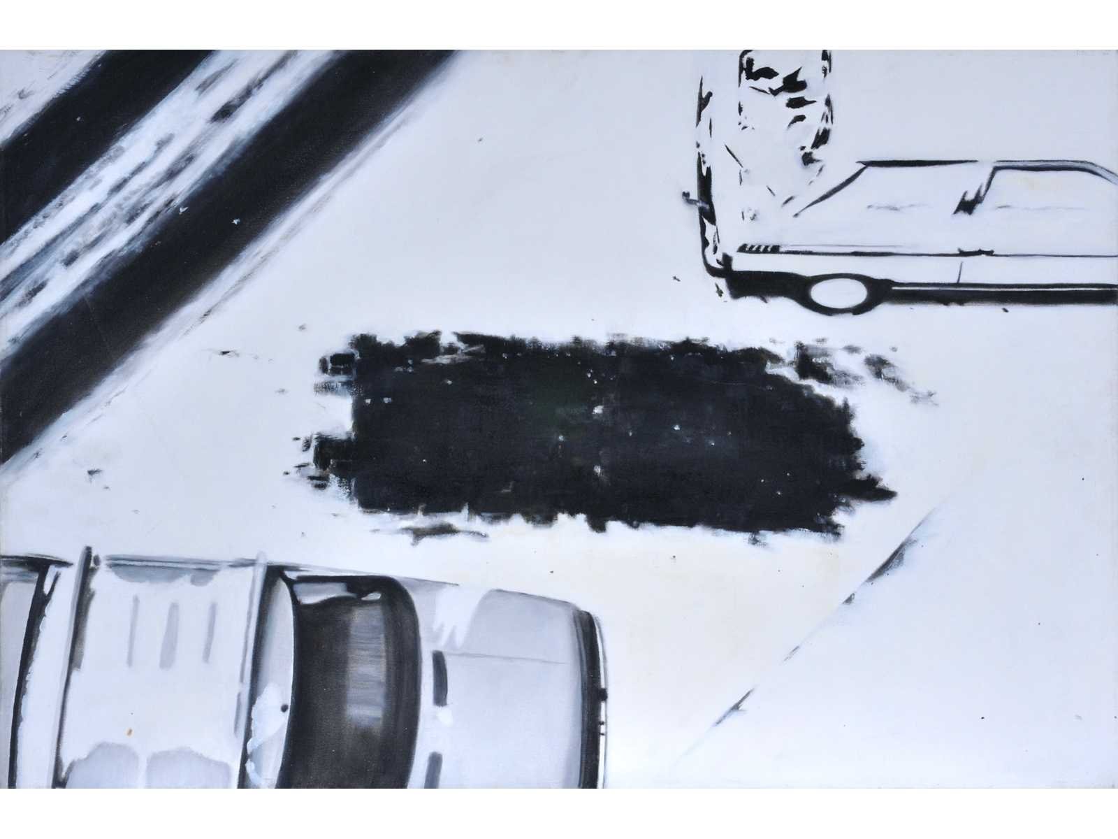 Liesbeth sevenhuijsen - bovenaanzicht old timer cars - olie op doek