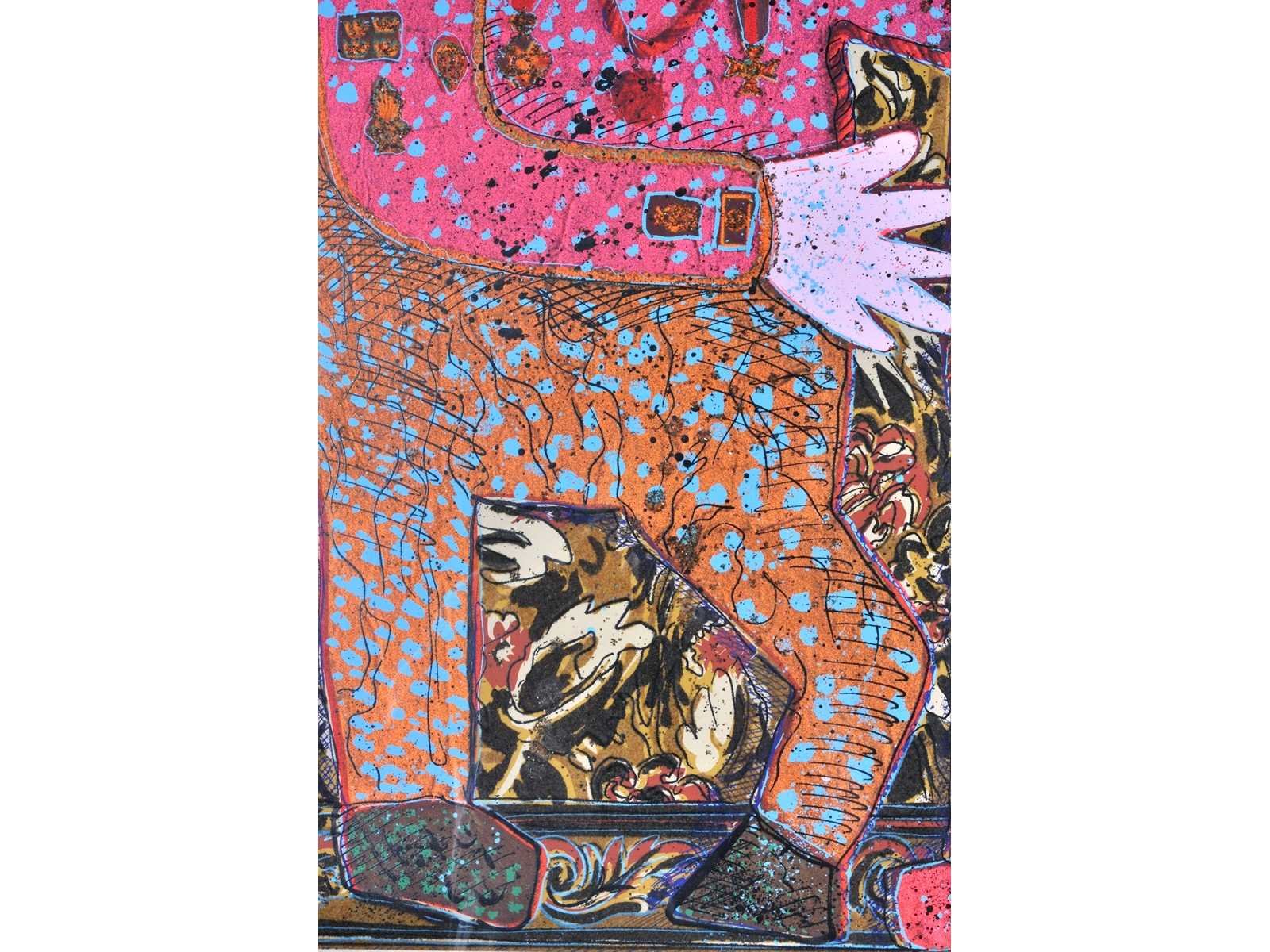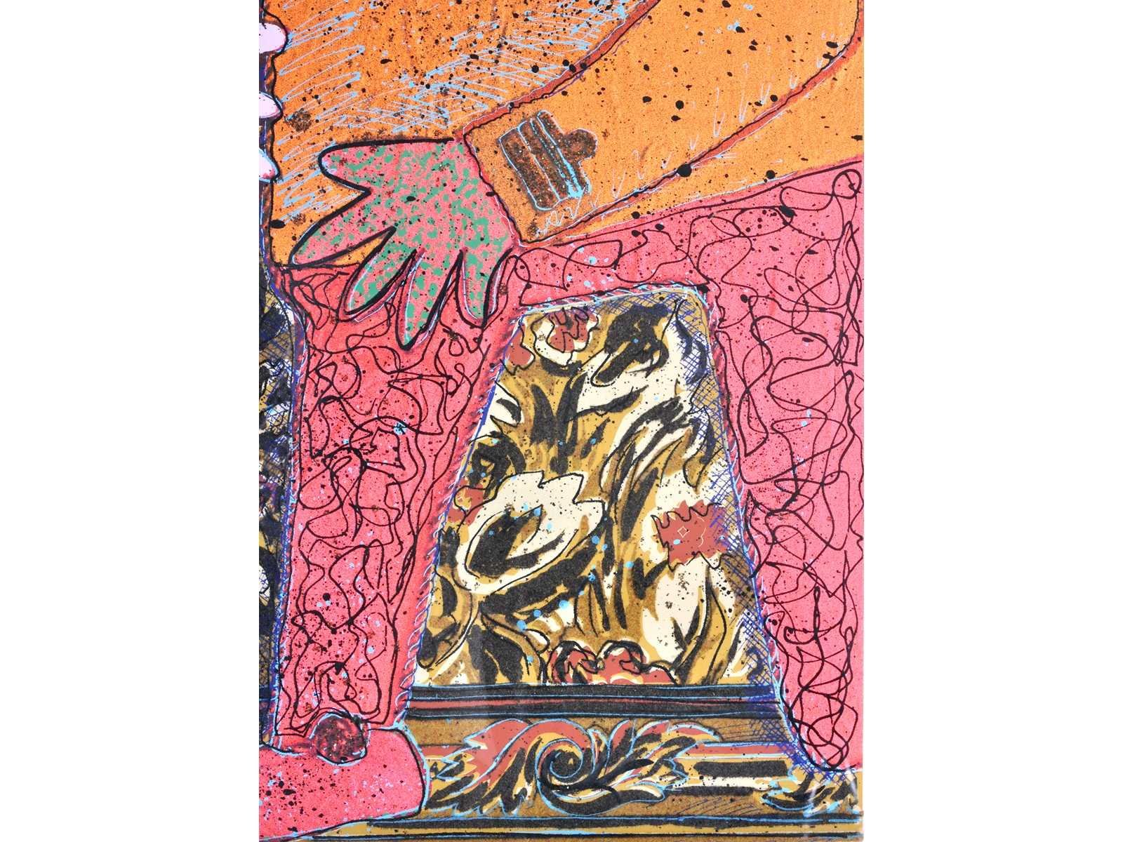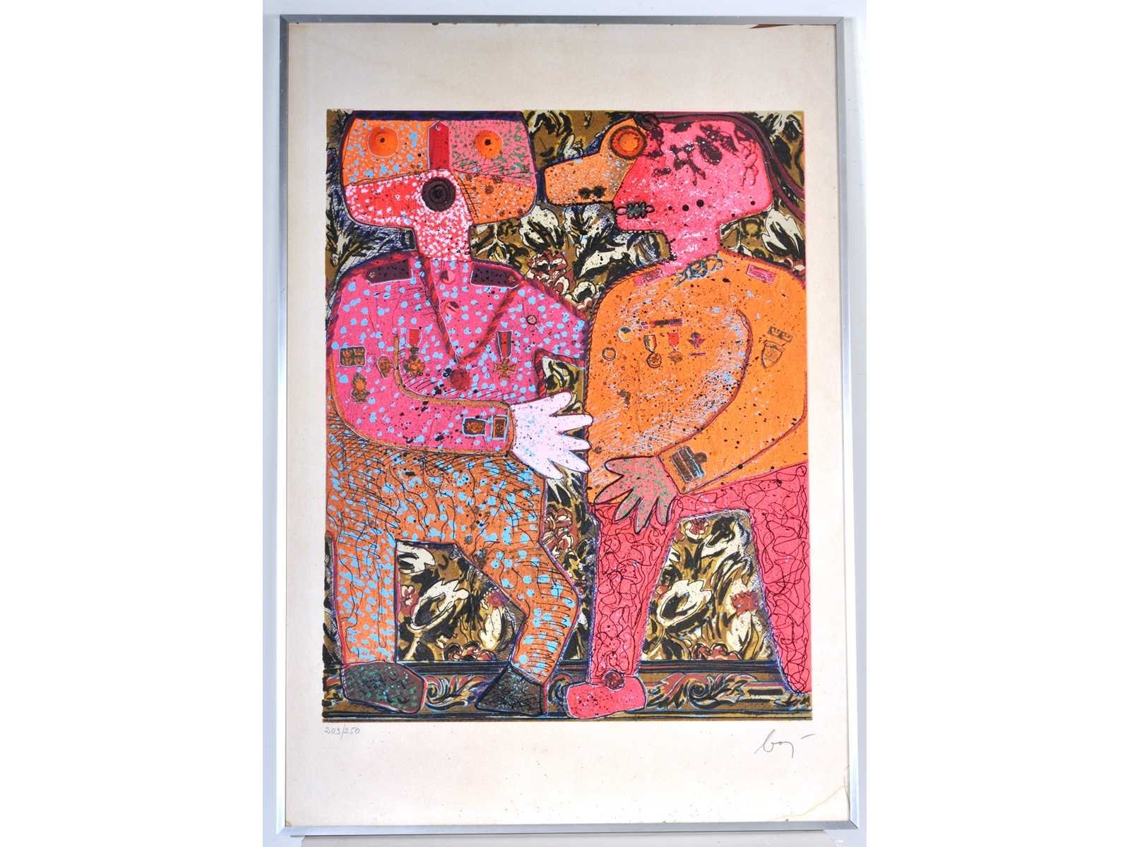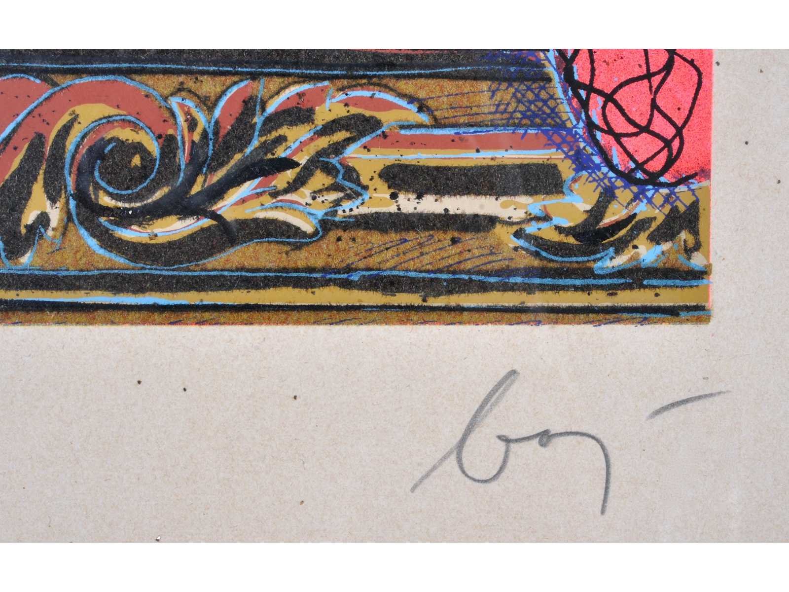 Nee Kunstenaar: Enrico Baj Titel van werk: Top Secret Techniek: gemengde techniek: zeefdruk, vlokken, glitter & gekleurd poeder Handtekening/oplage: true Oplage: 209/250 Gesigneerd: Gesigneerd en genummerd Hoogte incl. lijst: 100cm Breedte incl. lijst: 70cm Frame: true Literatuur: “Baj. Catalogo generale delle edizioni originali”, pag. 119 num. 383