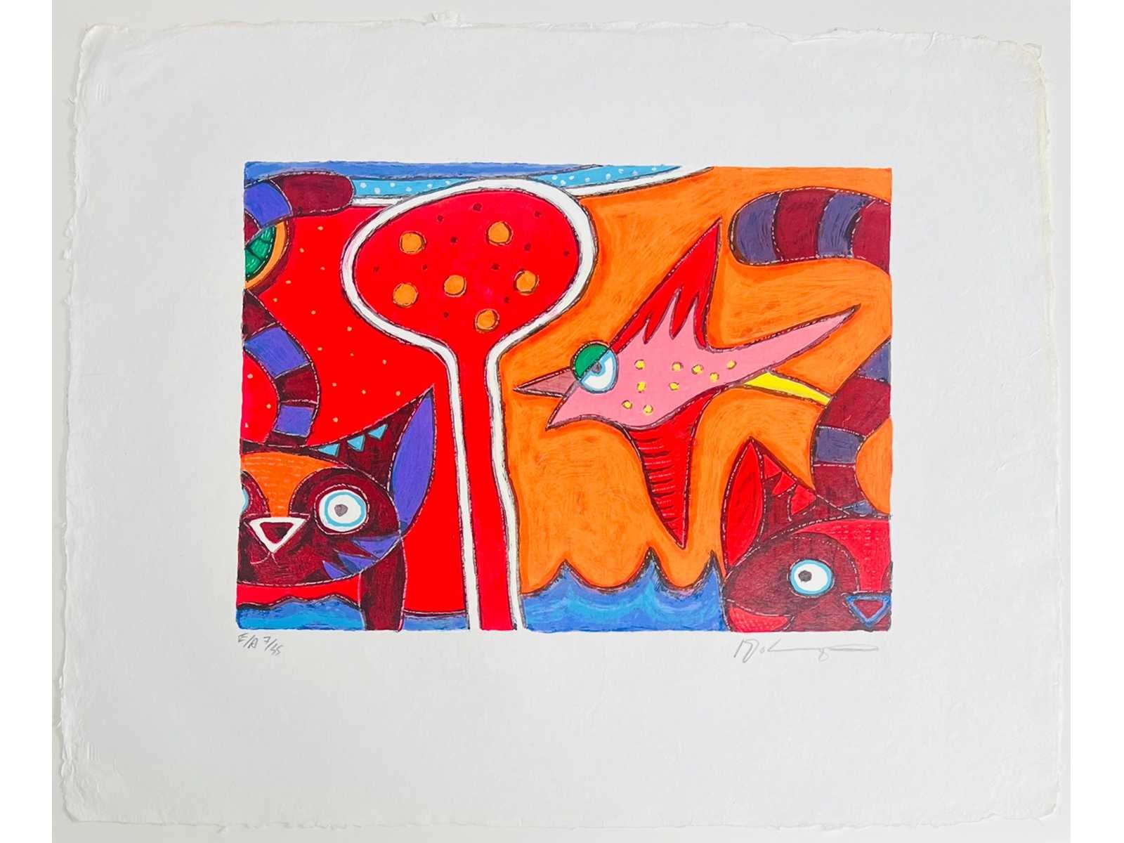 Kleurenzeefdruk op geschept papier - één van de 45 zeldzame kunstenaarsexemplaren EA (épreuve d'artiste) No Kunstenaar: Michiel Molenaar (Den Haag 1963) Techniek: kleurenzeefdruk Handtekening/oplage: true Oplage: EA 45 Gesigneerd: getekend Hoogte: 60cm Breedte: 50cm