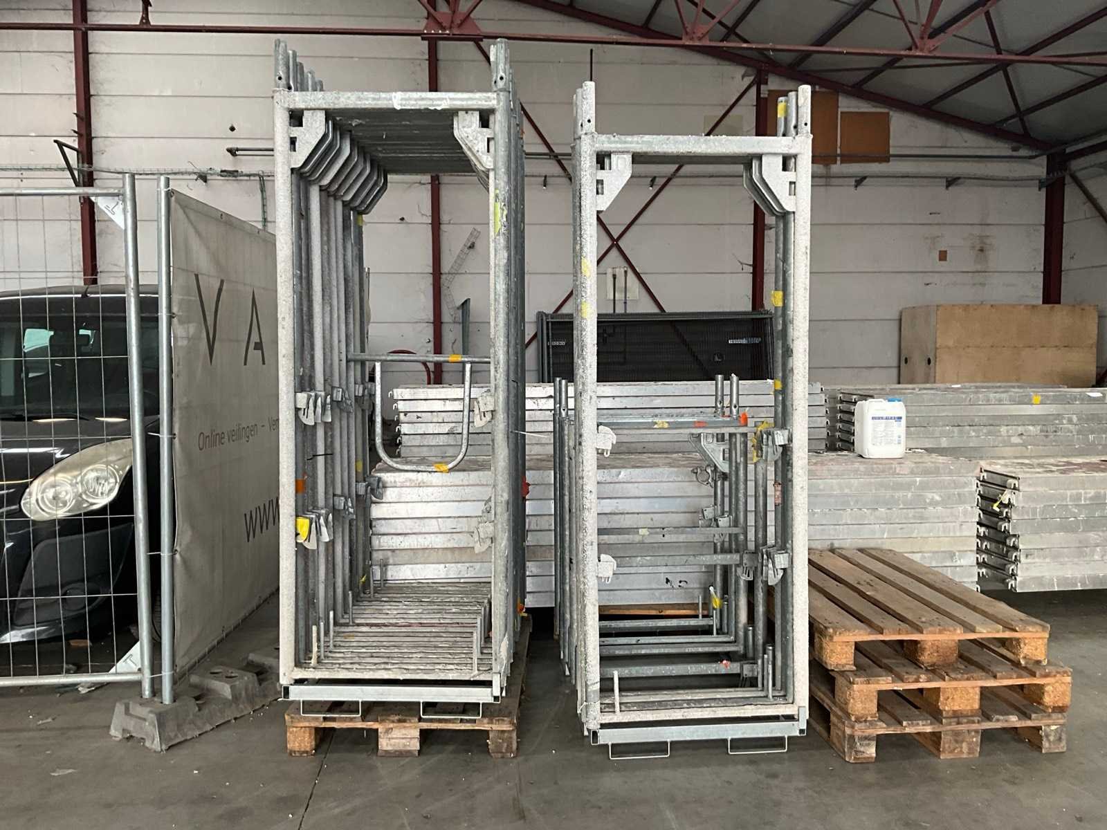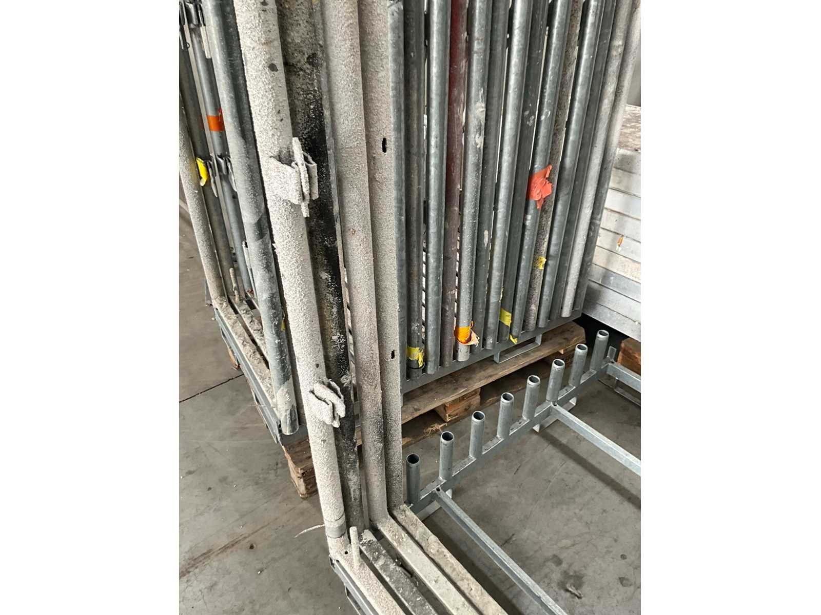 Waaronder 24x hoogte 200cm en 4x hoogte 100cm Compleet met 2x transportrek No Merk: Layher Totale afmeting Breedte: 78cm Totale afmeting Hoogte: 216cm Hoogte: 200cm