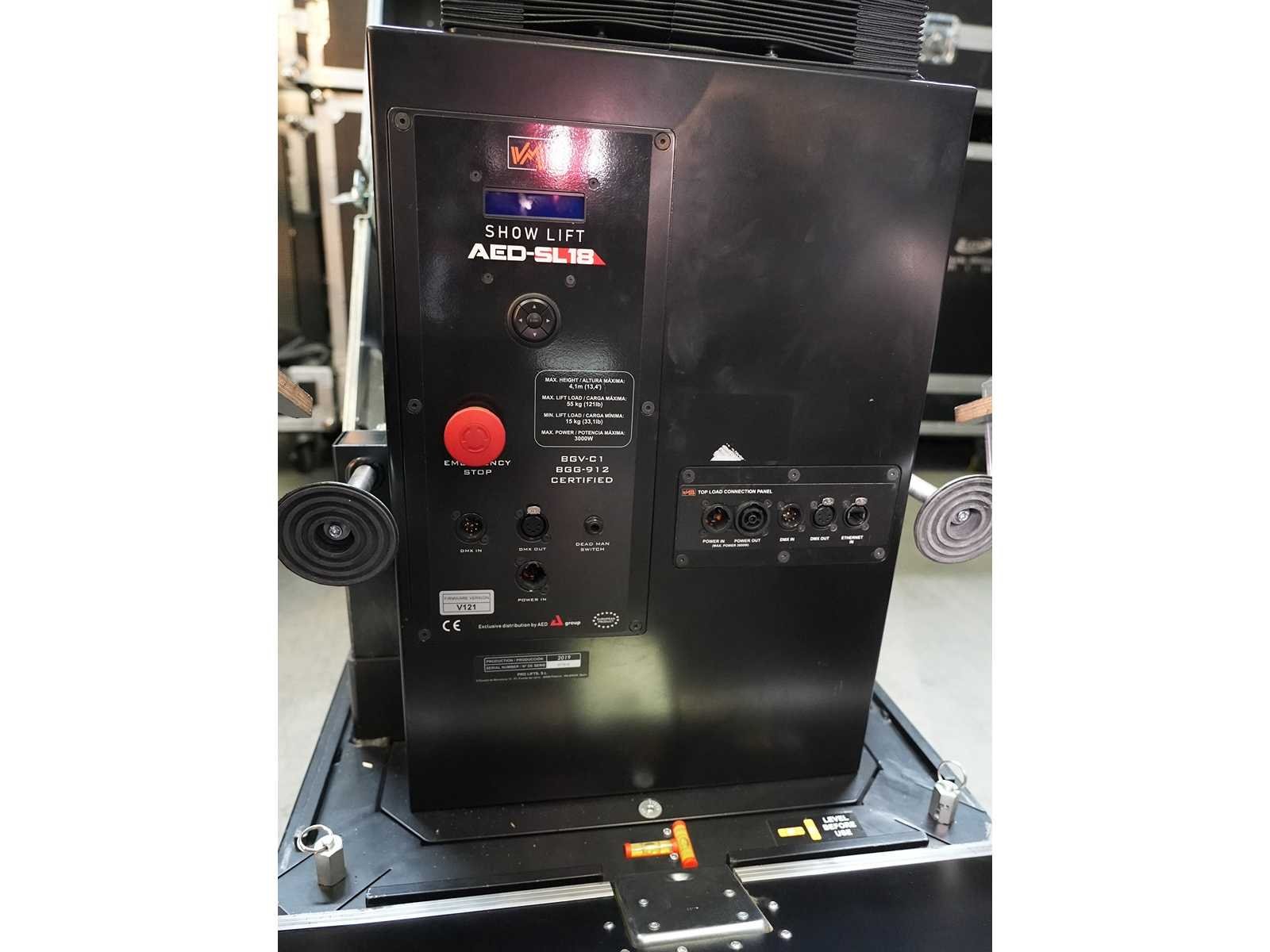 VMB SHOW LIFT Technical Specifications Max. height: 4.1 m | Folded height: 1.5 m Max. load: 55 kg | Min. load: 15 kg Work surface: 95 x 75 cm | Folded surface: 80 x 60 cm Power: 1.500 W | Peak power: 3.000 W INC FLIGHTCASE No Merk: VMB AED Type: SL18 BLACK Elektrisch bediend: true Max. hefhoogte: 4.1mm Max. hefcapaciteit: 55kg Eigen gewicht: 162kg
