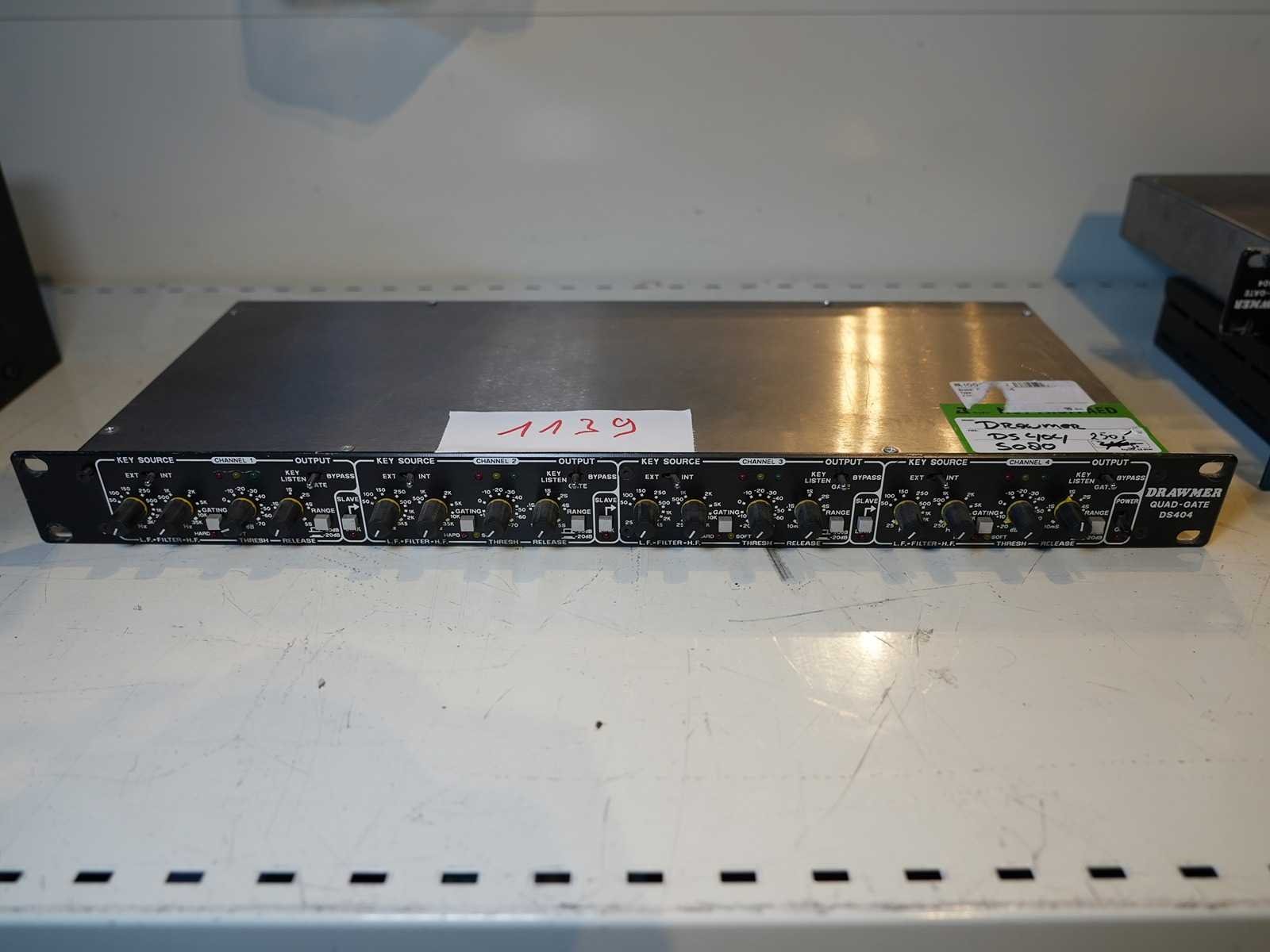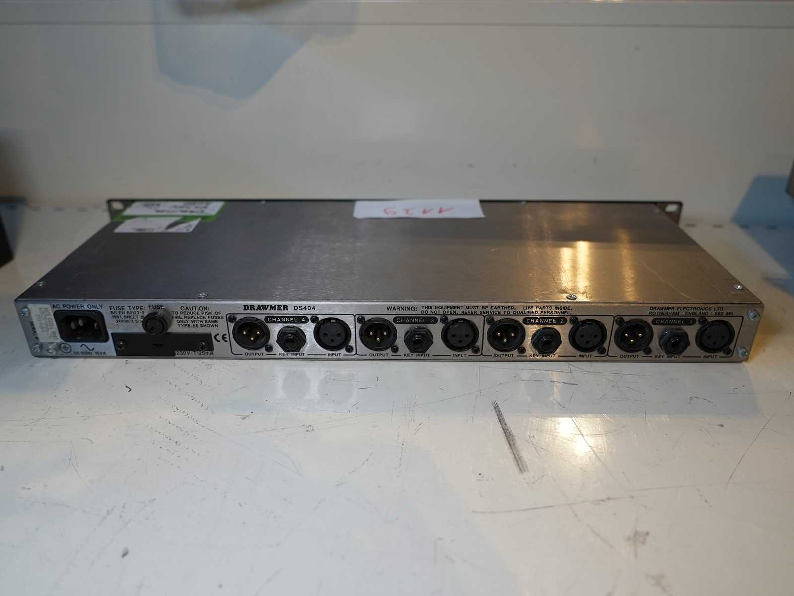 DRAWMER DS404 – Quad Noise Gate Model: DS404 Brand: Drawmer Description The Drawmer DS404 is an industry-standard quad noise gate designed for precision gating in both studio and live environments. Each of the four channels includes threshold and release controls, plus a fully adjustable side-chain filter for fine-tuning the trigger response in both low and high frequencies. A switchable attenuation range (-90 dB or -20 dB) allows for either full muting or subtle gating. The DS404 also offers selectable Hard Gate and Soft Gate modes: Hard Gate for classic, sharp gating Soft Gate for smooth, transparent processing ideal for vocals and full mixes Each channel can be linked via Slave Link, making multi-channel gating simple and precise. Robust build quality and clear LED metering make the DS404 a reliable tool for all professional gating applications. Key Features Quad noise gate (4 channels) Adjustable low & high side-chain filters Threshold & release controls per channel Hard/Soft gate modes Switchable attenuation: -90 dB or -20 dB Key input: internal / external Key Listen / Gate / Bypass modes Slave Link options for grouping channels Balanced XLR inputs, outputs & key inputs Multi-stage LED metering No Merk: Drawmer Model: DS404
