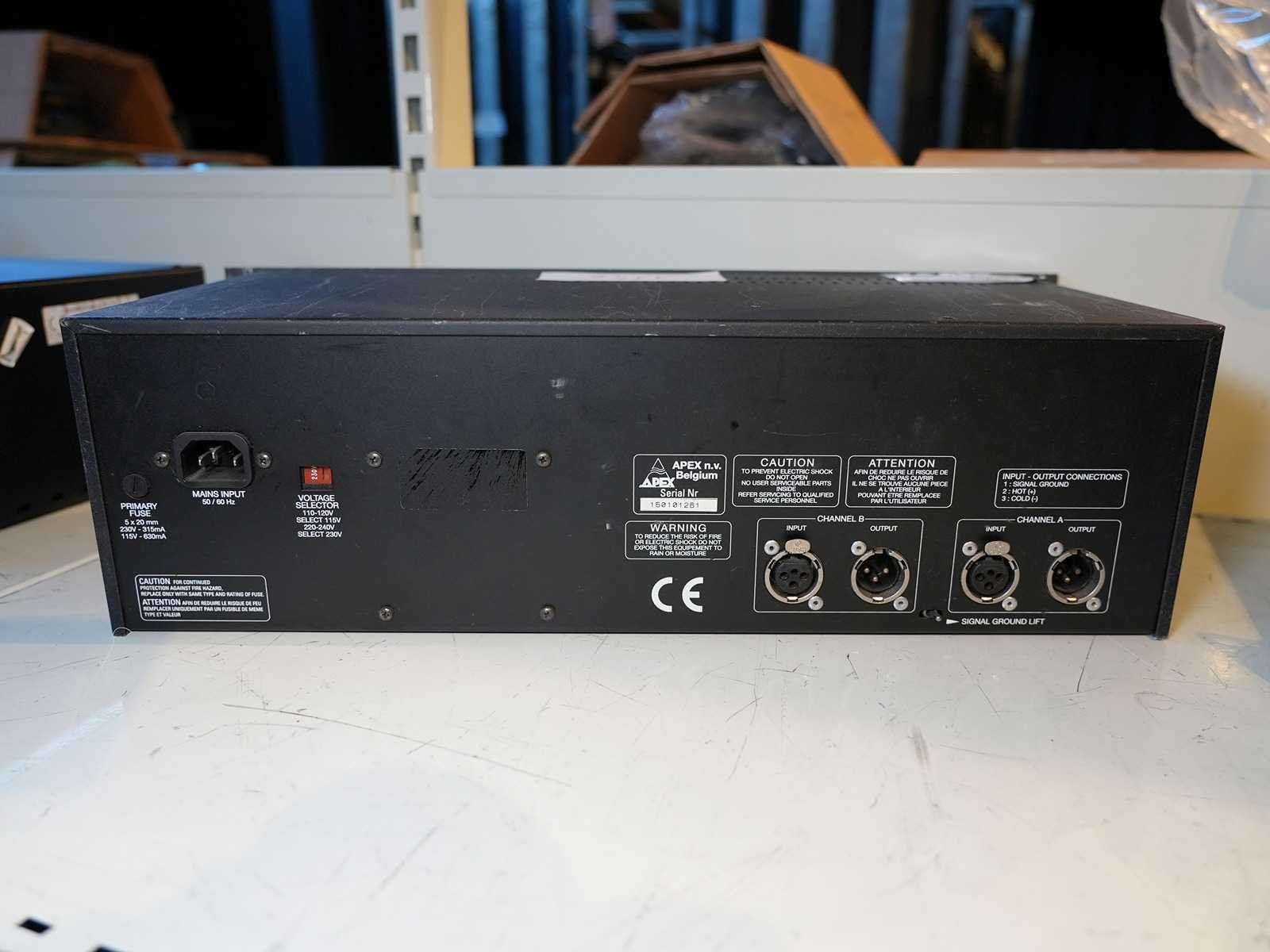 APEX GX-230 – 30-Band Constant-Q Graphic Equaliser Description: The Apex GX-230 is a high-precision 30-band graphic equaliser built around constant-Q bandpass filters using DLT (Dynamically Laser Trimmed) hybrid technology. This design ensures ultra-accurate frequency, phase, and amplitude response while maintaining consistent filter bandwidth, regardless of boost or cut settings. The unit includes switchable 30 Hz high-pass filters, selectable ±6 dB / ±12 dB boost–cut range, and In/Out bypass switching for instant comparison. A fast-attack peak detector monitors all overload points and warns the user 2 dB before clipping, ensuring clean, distortion-free operation. Key Features DLT hybrid filter technology for ultra-accurate response Switchable boost/cut range: ±6 dB or ±12 dB 30 Hz high-pass filters, switchable In/Out bypass for instant comparison Level control: -∞ to +6 dB Peak overload indication (2 dB before clipping) Optimised amplitude & phase response No Merk: APEX Model: GX 230