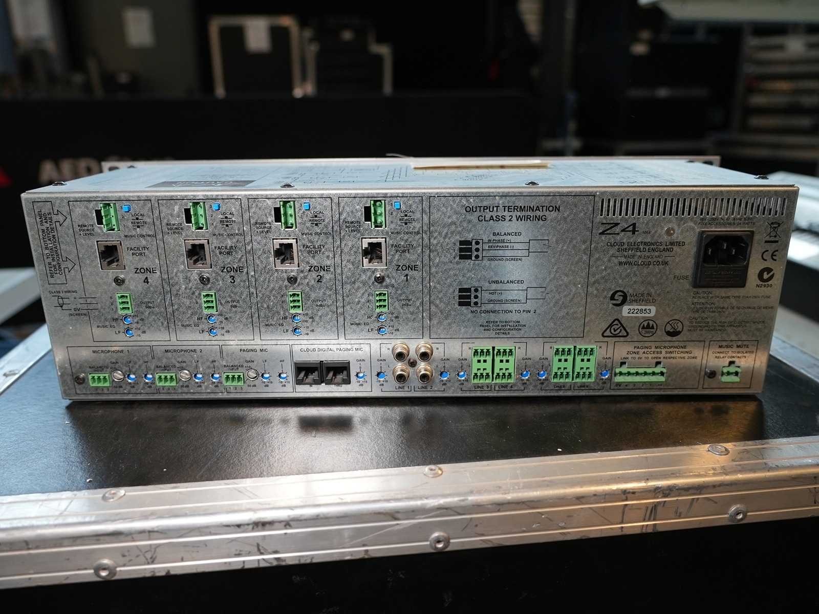 CLOUD Z4 MK4 – Four-Zone Venue Mixer Modelcode: Z4 MK4 Categorie: Audio Mixers / Zone Mixers Description The Cloud Z4 MK4 is a professional 4-zone venue mixer designed for commercial audio installations such as hospitality venues, retail spaces, fitness clubs, bars, restaurants and multi-room environments. It provides independent routing and level control for up to four separate zones, allowing flexible background music distribution and paging configuration. With Cloud’s renowned reliability, simple operation and high-quality audio performance, the Z4 MK4 is an industry-standard choice for fixed installations. Features 4 independent audio zones Independent music source selection per zone Separate zone level controls Paging and mic input capability Ideal for commercial & hospitality venues High-reliability installation mixer Easy front-panel operation Specifications Zones: 4 Type: Venue / Zone Mixer Inputs: Music sources + microphone/paging (depending on configuration) Form factor: Rackmount Brand: Cloud Electronics No Merk: CLOUD ELECTRONICS Model: Z4 MK4