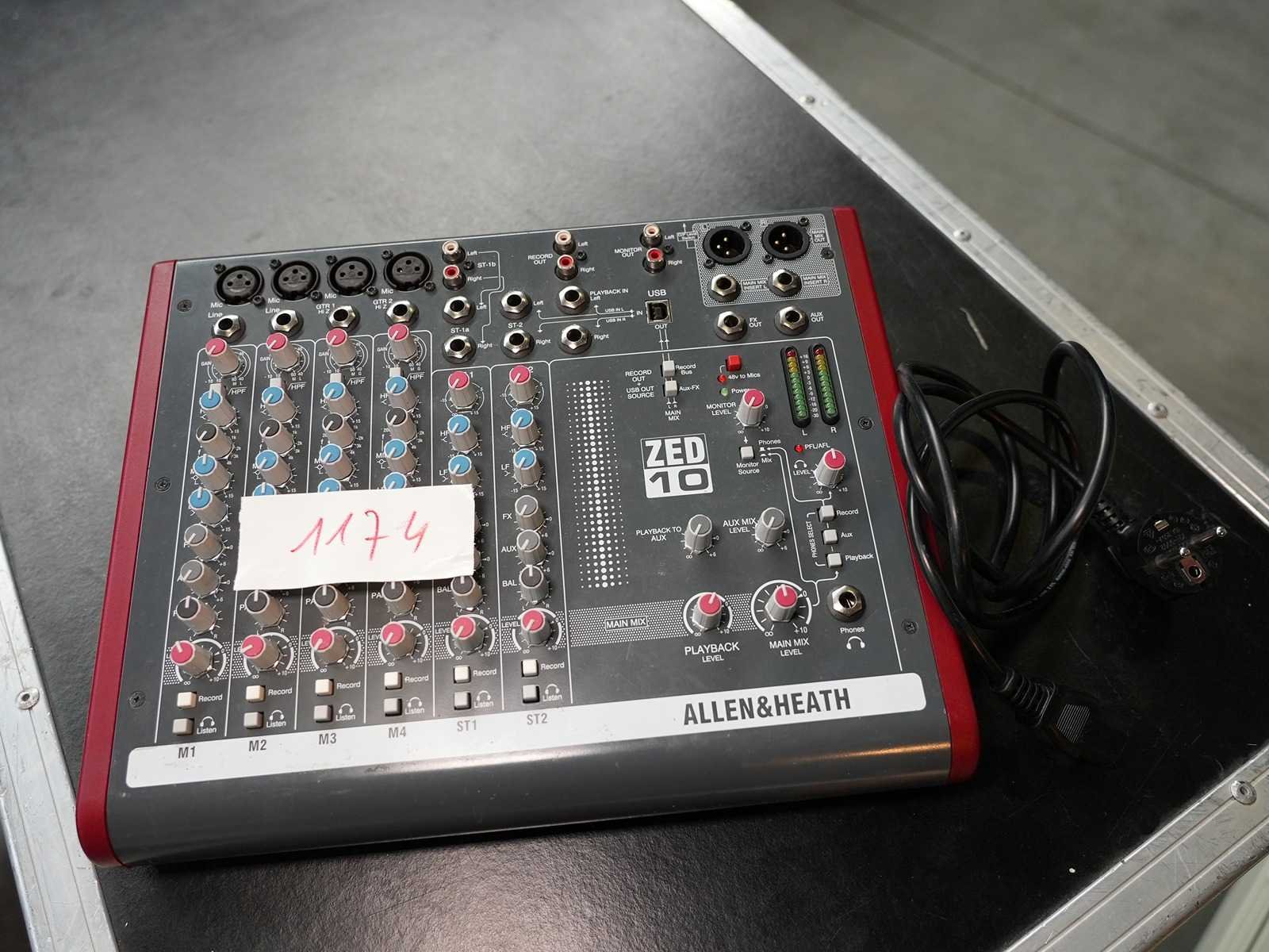 Allen & Heath ZED-10 – Analog Mixer Item code: TM-ZED10 Brand: Allen & Heath Category: Mixer – Analog / USB Recording Mixer Description: The Allen & Heath ZED-10 is a compact yet professional-grade analog mixer designed for small bands, project studios, houses of worship, and portable setups. Despite its small size, the ZED-10 delivers the renowned Allen & Heath audio quality, derived from the larger ZED USB series. Its built-in USB interface allows both recording and playback to/from a computer, enabling the use of computer-based effects directly in your mix. The mixer offers six inputs in total: four microphone inputs and two stereo line channels. Two of the mic channels feature Hi-Z inputs, allowing guitars to be connected directly without a DI box or amplifier. The stereo channels accept RCA and 6.3 mm jack connectors, making it easy to connect keyboards, media players, or other stereo sources. The high-quality EQ section provides precise tonal control, while the low-noise, low-interference circuit layout ensures clean and reliable audio performance. Key Features: 6 input channels (4 × mic / line + 2 × stereo) USB 2×2 audio interface for recording and playback Two Hi-Z instrument inputs for direct guitar connection 3-band EQ with swept mid on mono channels AUX output for external FX or monitors PFL on all channels Stereo monitor output + headphone output +48V phantom power Balanced XLR main outputs Compact, rugged design ideal for small setups Specifications: Mic inputs: 4 × XLR Stereo inputs: RCA + 6.3 mm jacks Outputs: XLR, TRS, RCA, Headphones AUX sends: 1 USB: 2×2 recording/playback Built-in FX: No 19" rack mountable: No Phantom power: Yes (+48V) Controls: Rotary knobs Weight: 4.3 kg (with packaging) Dimensions (with packaging): 39.0 × 31.0 × 14.0 cm No Merk: Allen & Heath Type: TM-ZED10 Analoge meters: true Eigen gewicht: 4.3kg