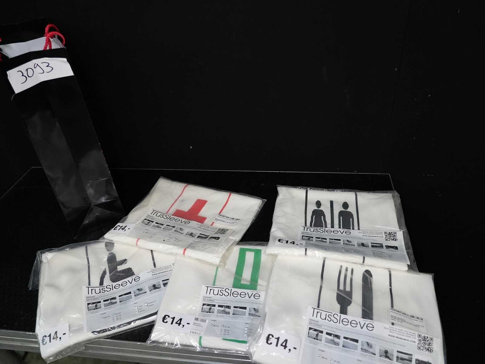 SET: 1X TRUSSLEEVE WHITE 27 CM - DISABLED SIGN - 60 CM 1X TRUSSLEEVE WHITE 27 CM - EMERGENCY EXIT SIGN-60CM 1X TRUSSLEEVE WHITE 27 CM - FIRST AID - 60 CM 1X TRUSSLEEVE WHITE 27 CM - FOOD & DRINK - 60 CM 1X TRUSSLEEVE WHITE 27 CM - LAVATORY - 60 CM No Merk: SHOWTEX Type: TRUSSLEEVE WHITE 27 CM - SIGN
