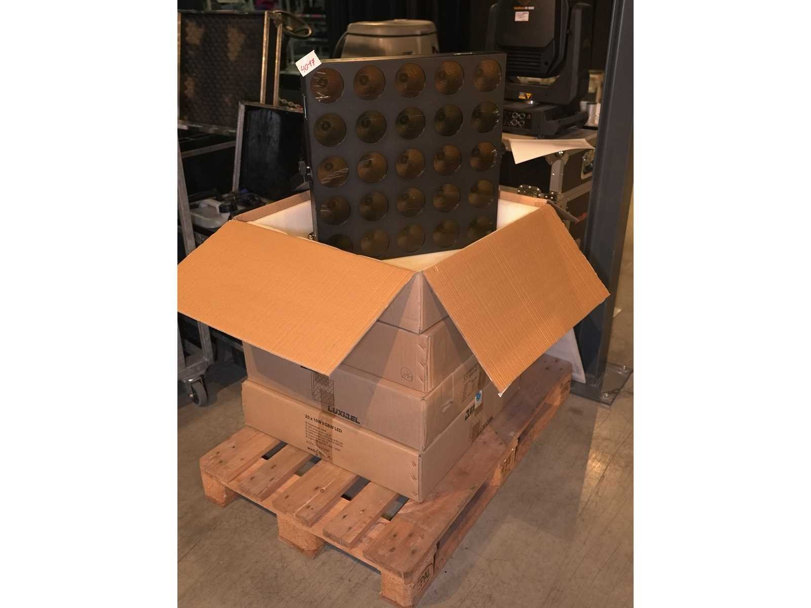 Luxibel - Set 4x Luxibel B25 a compact and highly adaptable matrix lighting unit engineered to create remarkable and unique visual experiences. This unit is equipped with 25x 10W RGB Amber Matrix LEDs, making it the first of its kind in the 5x5 matrix category to incorporate removable frost filters. The amber LED chips in the B 25 produce an exceptional glow, setting it apart from standard 'RGB only' units with its distinctive luminosity. The B 25 has been meticulously designed for maximum versatility. It can be flown, stacked, or positioned both horizontally and vertically, catering to a wide range of design needs. Its sleek profile renders it ideal for indoor settings, where its impactful lighting can truly shine. The B 25 is suitable for a diverse array of events and applications, and guaranteed to enhance the visual appeal of any space it illuminates. No Merk: Luxibel Type: 25 x 10W RGB Amber Matrix LED Bouwjaar: 2017 LED: true Totale afmeting L: 126mm Totale afmeting Breedte: 580mm Totale afmeting Hoogte: 580mm Eigen gewicht: 14.5kg GS Code: 9405494000