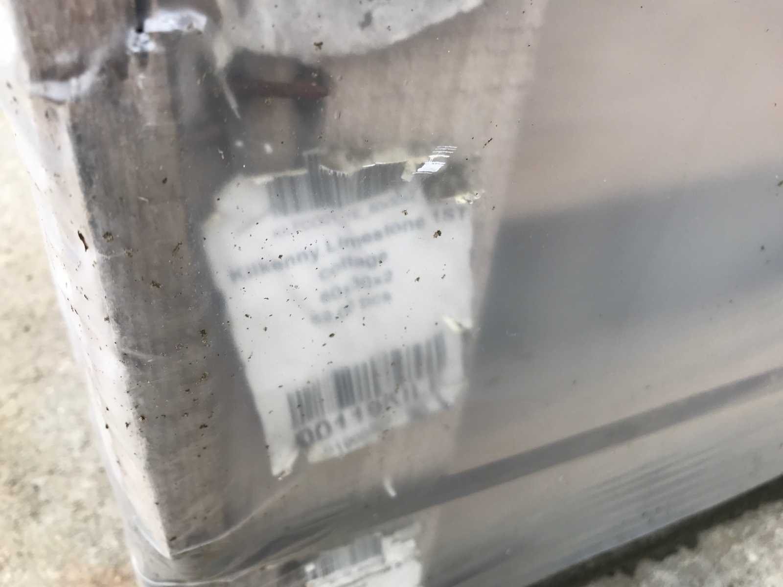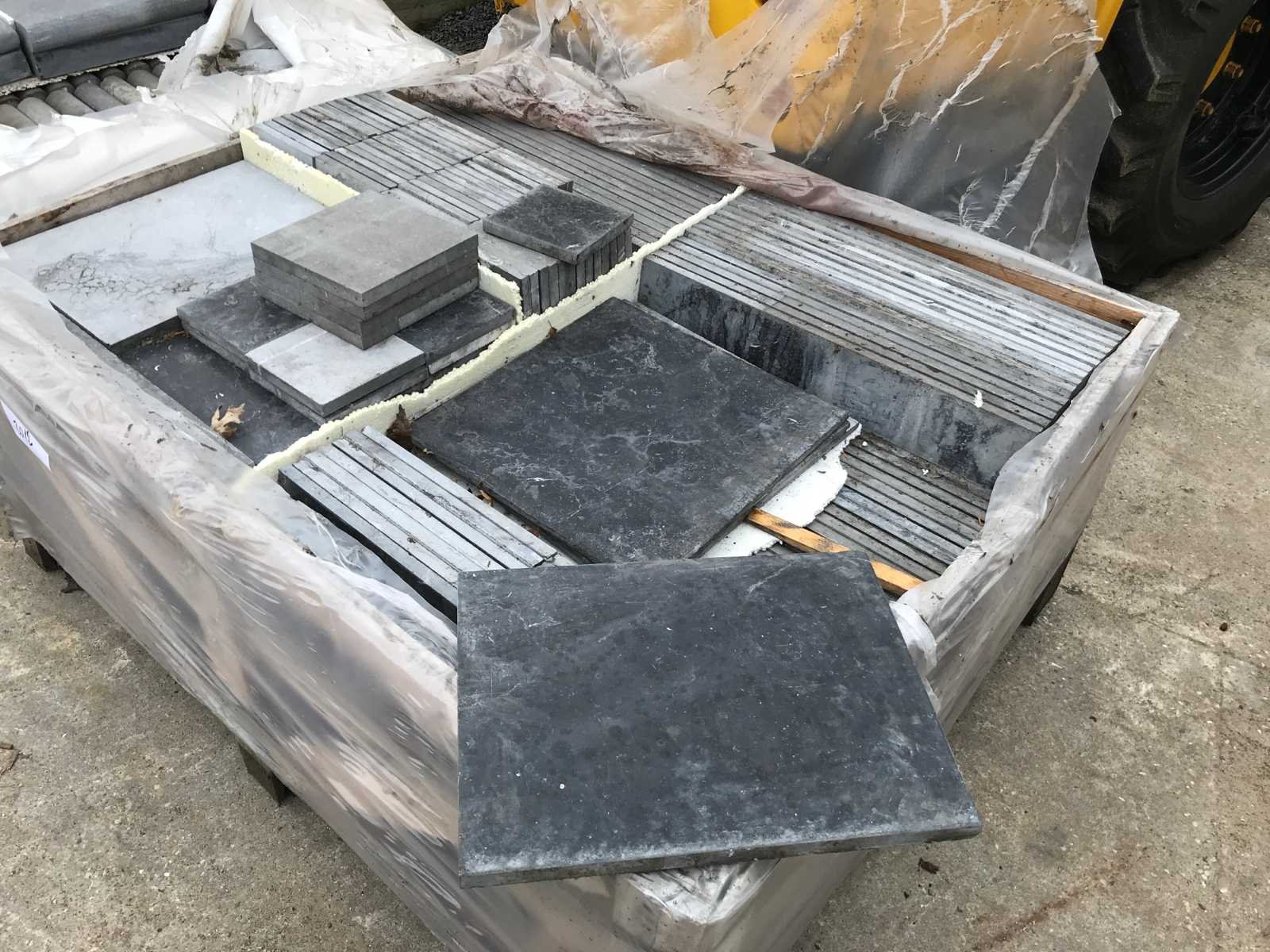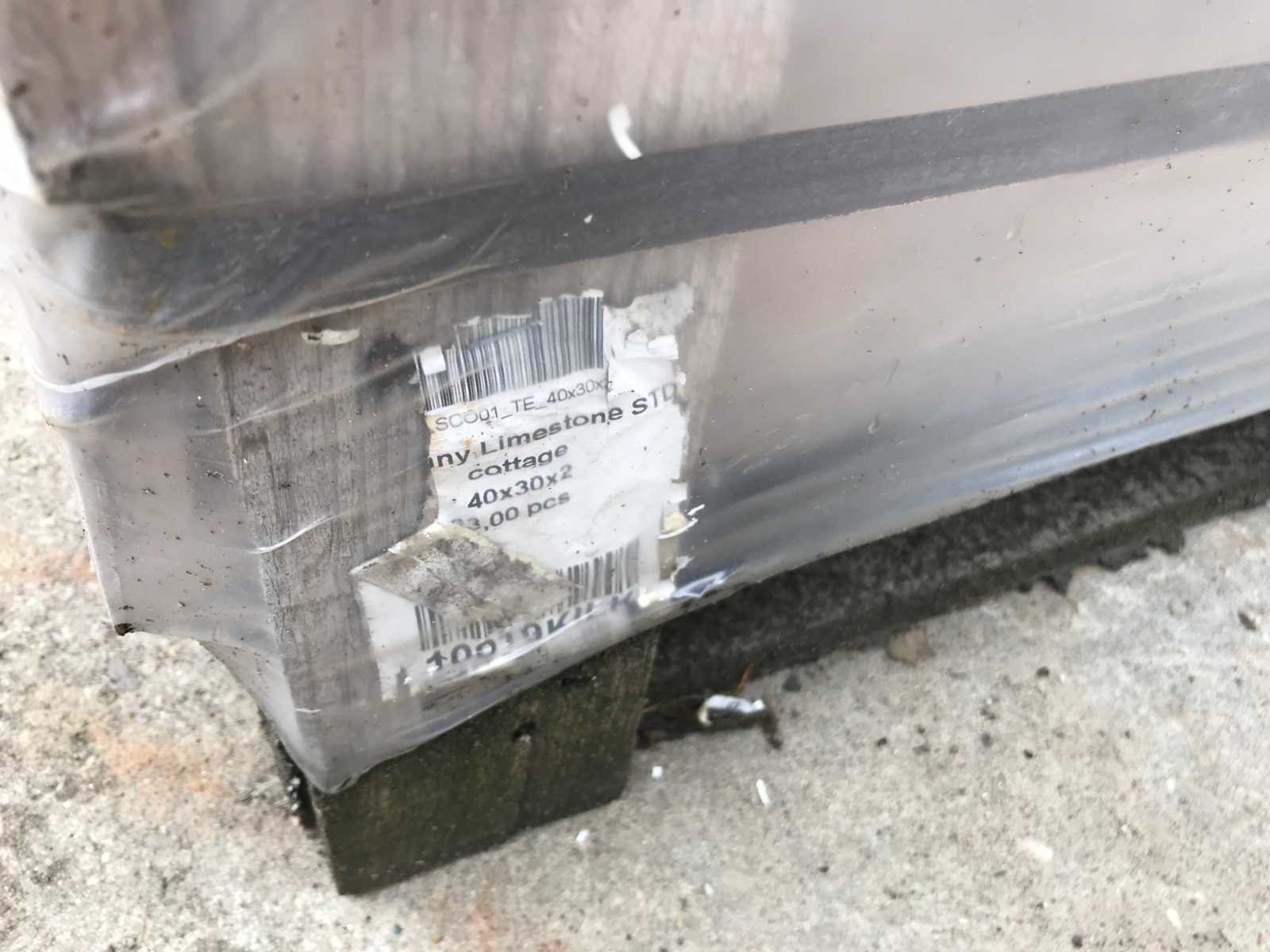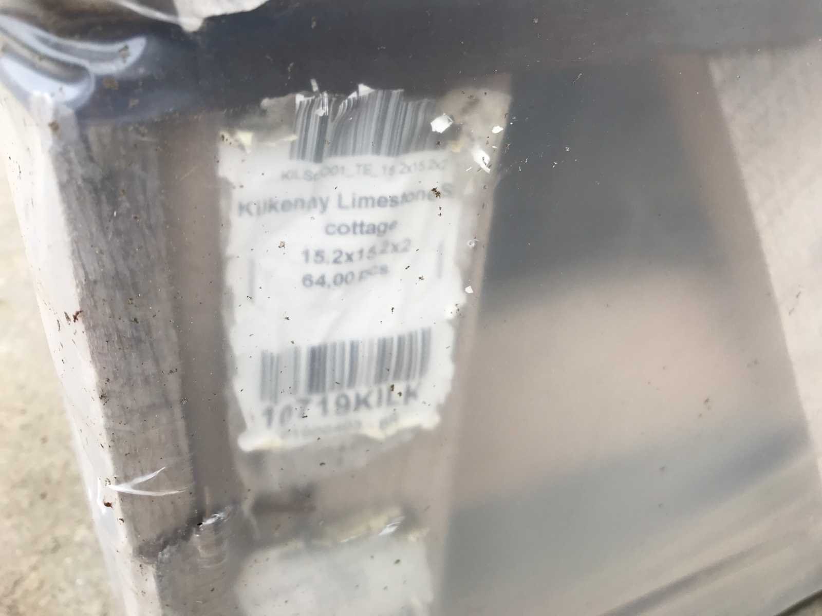 Pallet:1, ca. 12st. 40x40x2, ca. 64st. 15,2x15,2x2, ca. 1x60x30x2, ca. 23st. 40x30x2, ca. 15,5m2 Nee Merk: kilkenny limestone