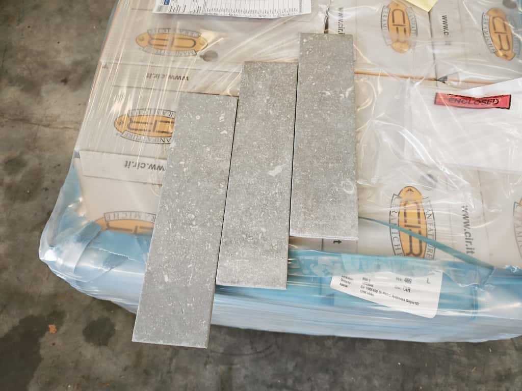 Nee Merk: Cir Kleur: Grigio Afwerking: Mat R10 Lengte: 100mm Breedte: 400mm Dikte: 10mm Materiaal: Keramiek Type: Vloertegel Model: Di Pietra Ardennes 1076932 Aantal m² per verpakking: 1m² Aantal pakken: 34 Totaal oppervlakte: 34.48m² Totaal gewicht: 700kg