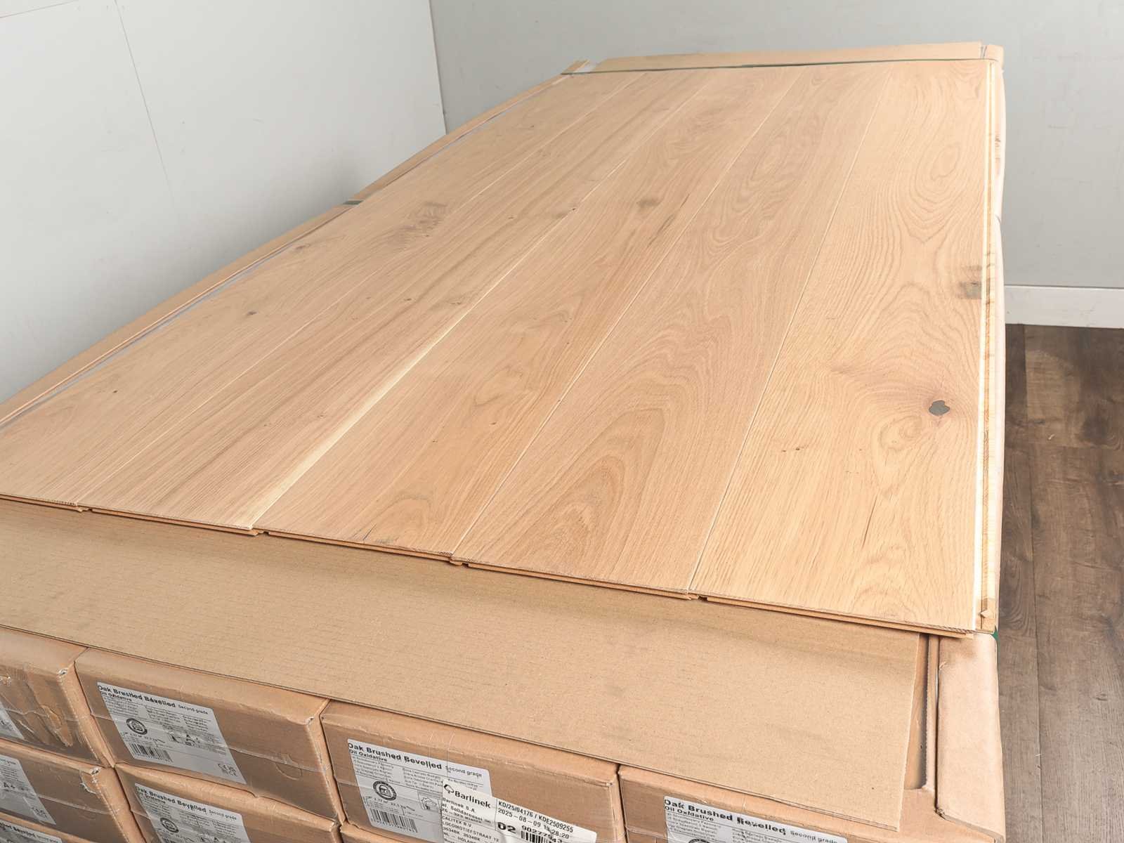 Gemakkelijk te leggen wegens 5G clicksysteem, geschikt voor alle soorten vloer en koelverwarmingen, kwaliteits parketvloer, vloer is van hoogwaardig Europees eiken hout, kant en klaar behandeld, dikte 14 mm, toplaag 3 mm, 56 pakken a 2,26 m2 No Merk: Ambiance Product type: Parket Oppervlakte: 126m² Geschikt voor vloerverwarming: Ja V-groef: Ja Afwerking: Mat wit gelakt, voelbaar structuur, met v-groef Aantal m² per verpakking: 2.26m² Kleur: Natural oak 006 Gewicht: 1050kg Lengte: 1800mm Breedte: 180mm Materiaal: Eiken multiplank
