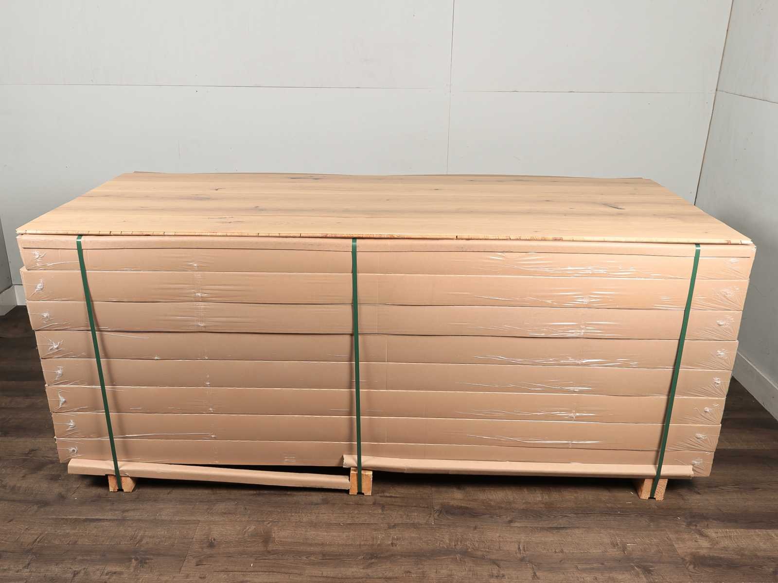 Gemakkelijk te leggen wegens mes en groef systeem, geschikt voor alle soorten vloer en koelverwarmingen, kwaliteits parketvloer, vloer is van hoogwaardig Europees eiken hout, kant en klaar behandeld, dikte 14 mm, toplaag 3 mm, 20 pakken a 2,77 m2 No Merk: Ambiance Product type: Parket Oppervlakte: 55m² Geschikt voor vloerverwarming: Ja V-groef: Ja Afwerking: Mat gelakt, geborsteld, met v-groef Aantal m² per verpakking: 2.77m² Kleur: Cream trend oak 171 Gewicht: 460kg Lengte: 2200mm Breedte: 180mm Materiaal: Eiken multiplank