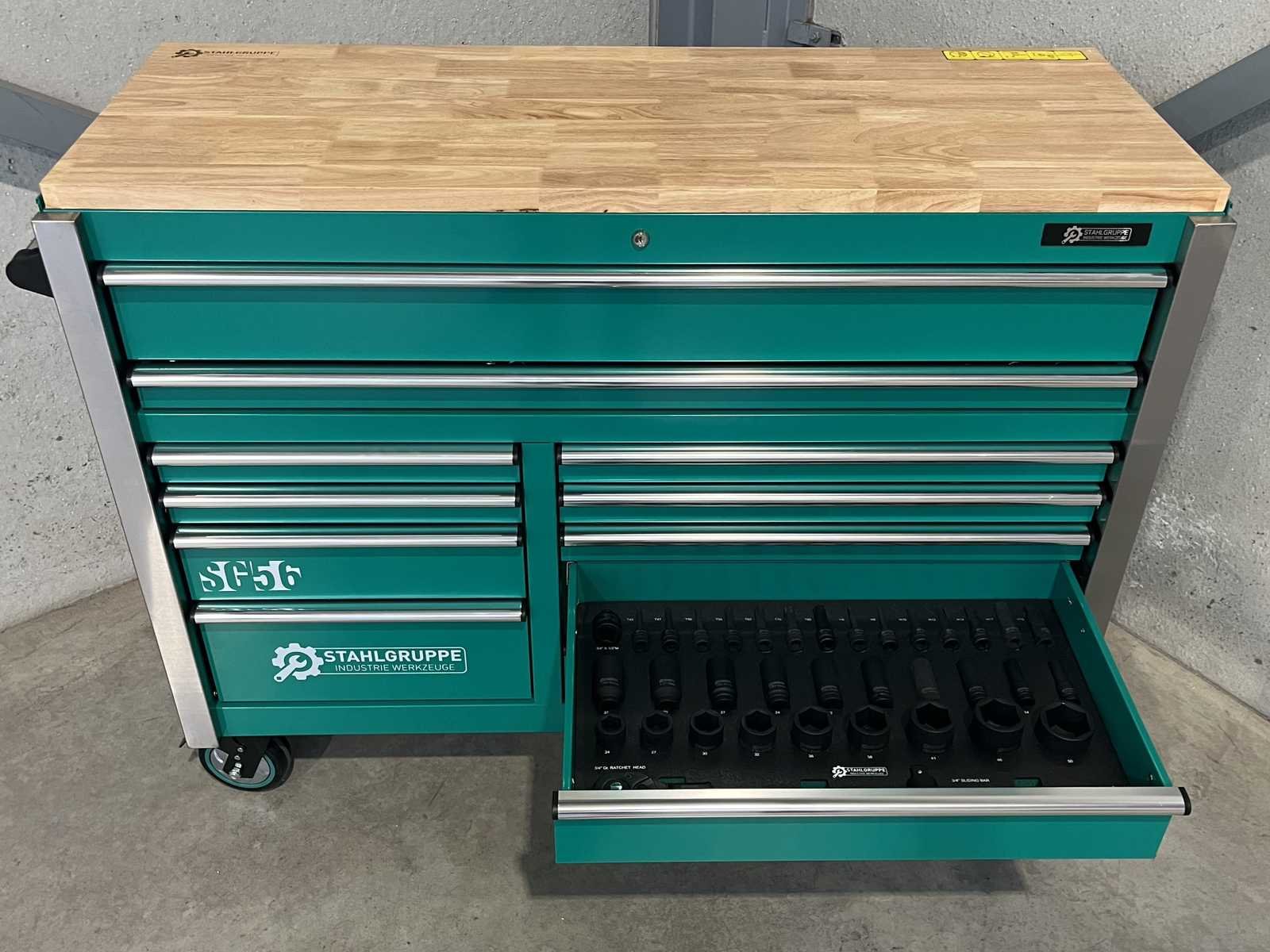 <li><b>Heavy Duty gereedschapswagen</b></li> <li><b>gebruik:</b> voor professionals</li> <li><b>aantal laden:</b> 11 laden</li> <li><b>aantal gevulde laden:</b> 9 gevulde laden</li> <li><b>gereedschap:</b> chroom-vanadium gereedschap</li> <li><b>inhoud:</b> <ul> <li>29-delige ring-steeksleutel set (6 mm - 50 mm)</li> <li>3 ratelsleutel sets met doppen & bitsen (1/4”, 3/8” & 1/2”)</li> <li>11-delige ring-ringsleutel set (6*7 mm - 30*32 mm)</li> <li>verstelbare moersleutel</li> <li>12-delige tangen set</li> <li>2 hamers & 4 vijlen</li> <li>puntslag en beitel set</li> <li>12 schroevendraaiers</li> <li>inbussleutels, Torxsleutels, precisiegereedschap</li> <li>21-delige T-sleutelset</li> <li>34-delige krachtdoppen set (12 mm - 50 mm) + Torx & inbus doppen & ratelsleutel 3/4,”</li> <li>LED-lamp, zaag, schaar, mes, meetgereedschappen</li> <li>enzovoort...</li> </ul> </li> <li><b>staat:</b> ongebruikt, in de originele verpakking</li> <li><b>afmetingen:</b> L 140 x B 60 x H 110 cm</li> Nee Merk: Stahlgruppe Type: SG56