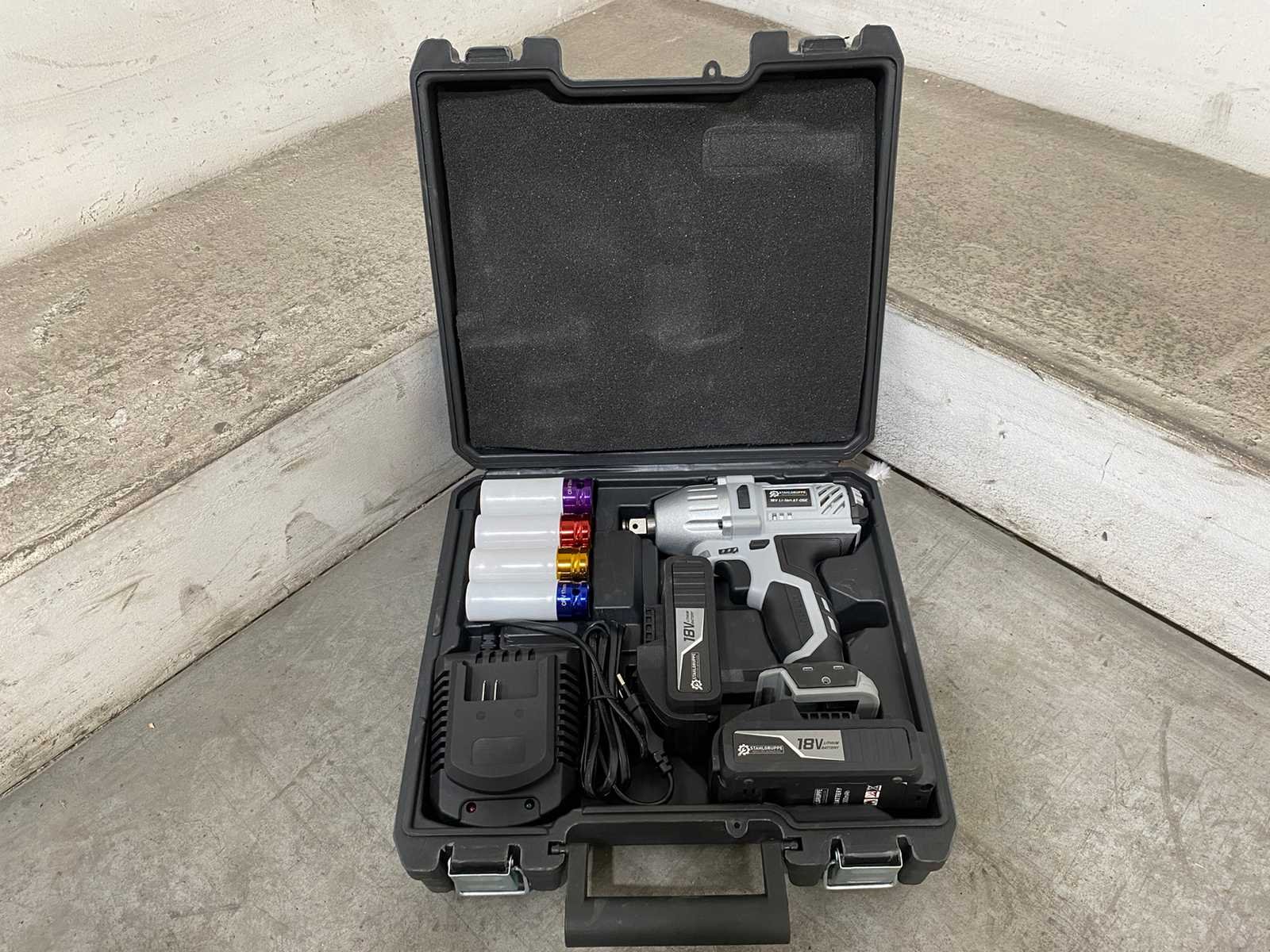 <li><b>Accu slagmoersleutel</b></li> <li><b>Koppel:</b> 330 Nm</li> <li><b>Voltage:</b> 18 volt</li> <li><b>Accu:</b> 2.0 Ah accu</li> <li><b>Toeren per minuut:</b> 3000 RPM</li> <li><b>Aantal accu’s:</b> 2 accu’s</li> <li><b>Acculader:</b> Acculader inbegrepen</li> <li><b>Inbegrepen:</b> 4 slagmoer doppen (maten: 17-19-21-22 mm)</li> <li><b>Voorzien van:</b> Werklamp en batterij indicator</li> <li><b>Staat:</b> Ongebruikt, in de originele verpakking</li> Nee Merk: Stahlgruppe