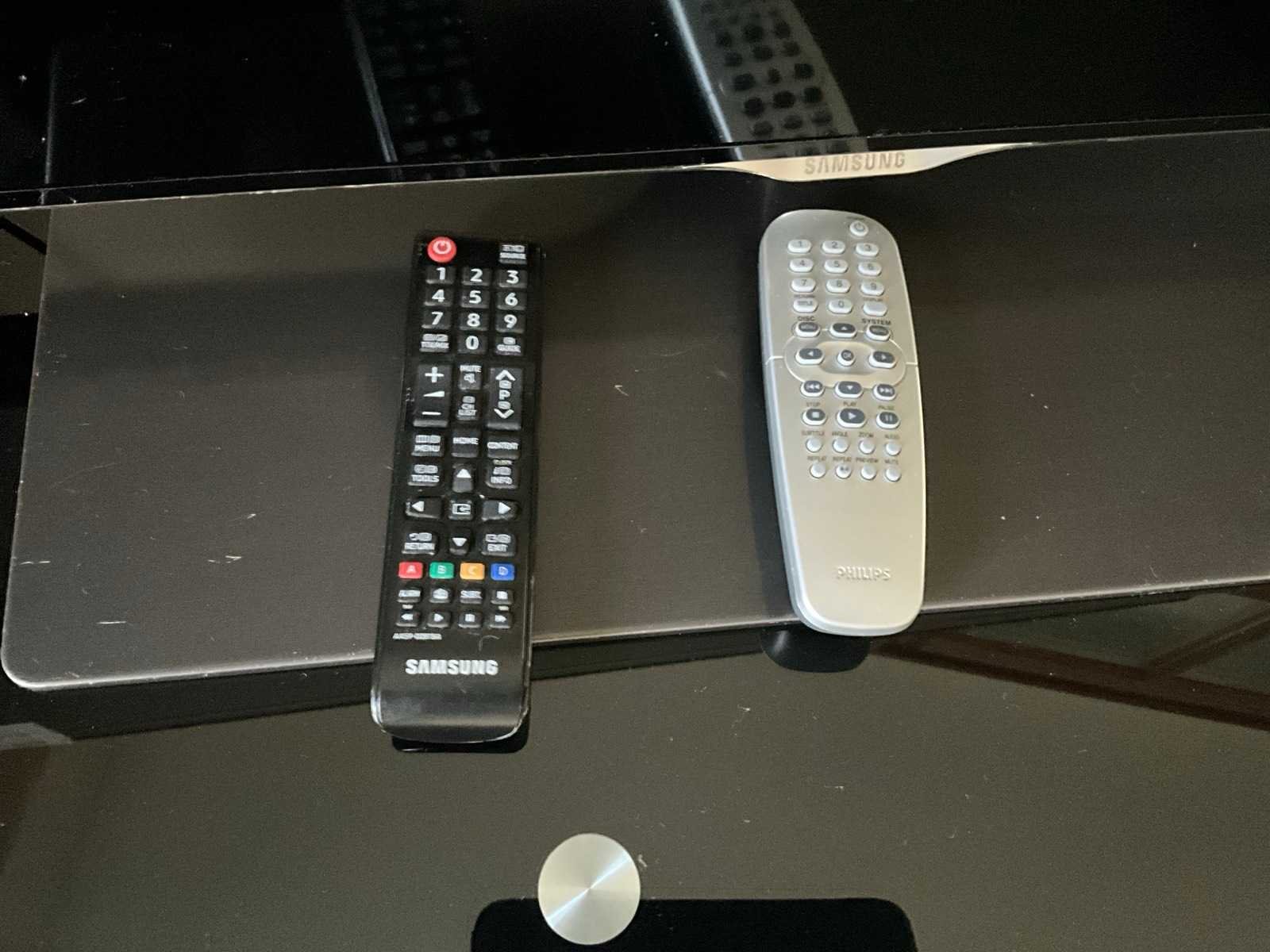 Alsook Philips dvd speler, afstandsbedieningen aanwezig, inclusief tv-meubel, afmetingen 130x50x50cm Nee Merk: Samsung Type: UE55F6740FF Breedte: 123cm Hoogte: 70cm