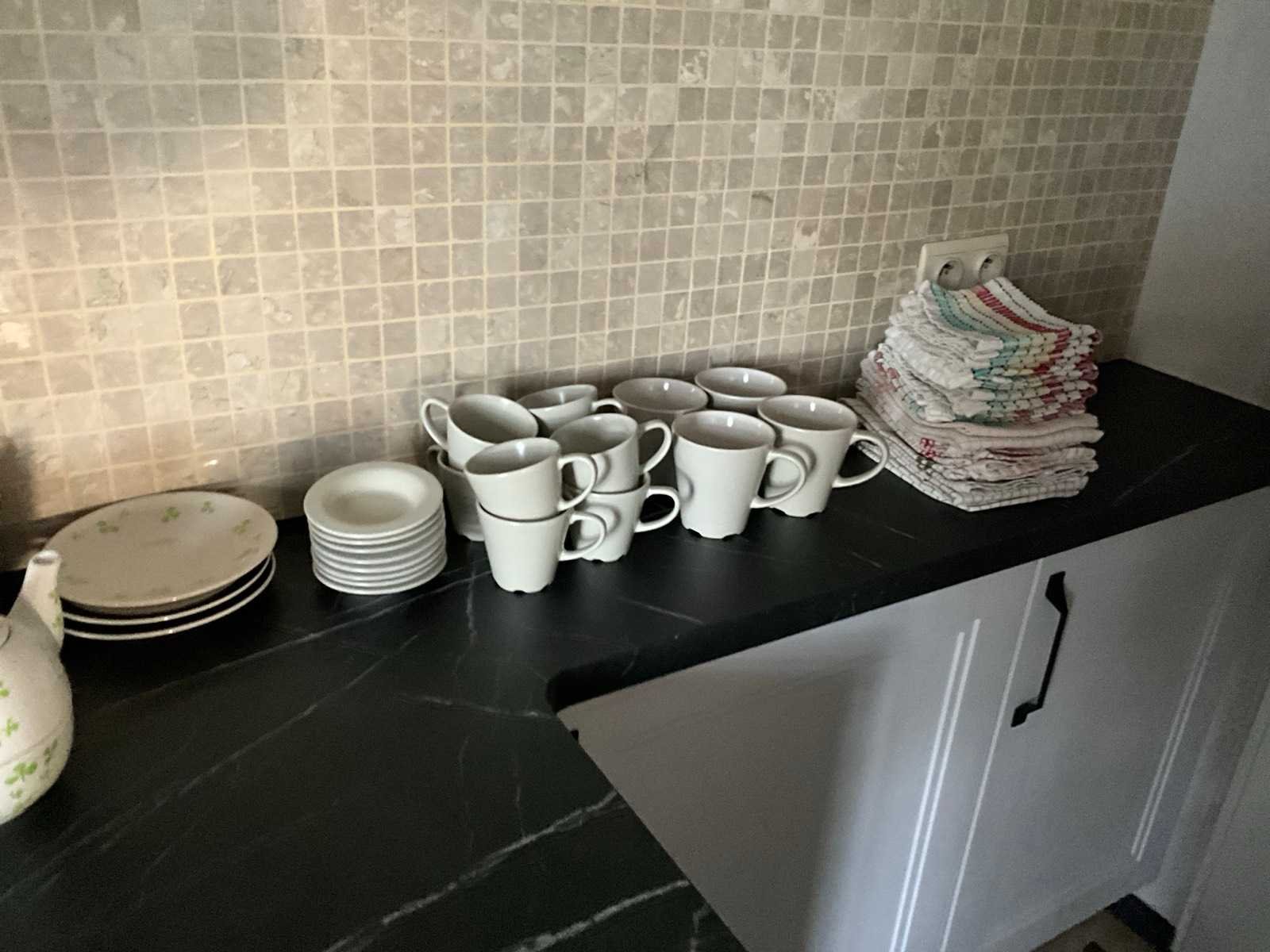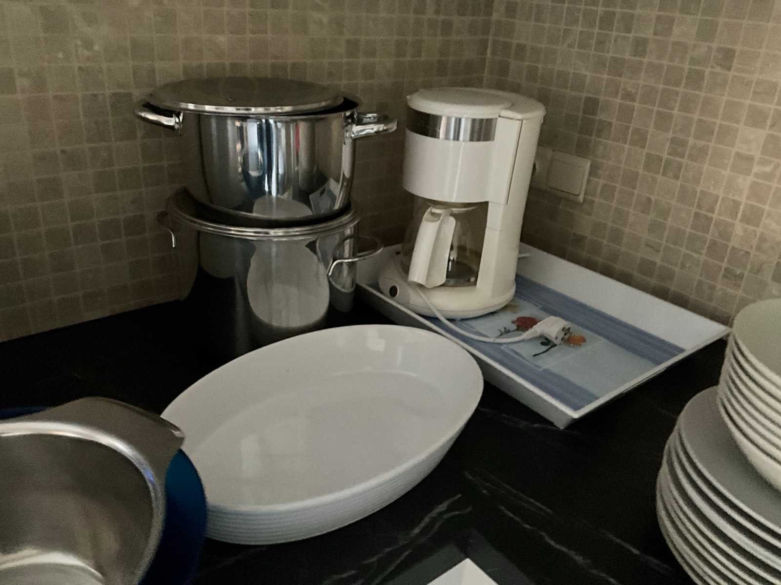 Waaronder magnetron, koffiezetapparaat, servies, tassen, diverse potten en pannen. Nee