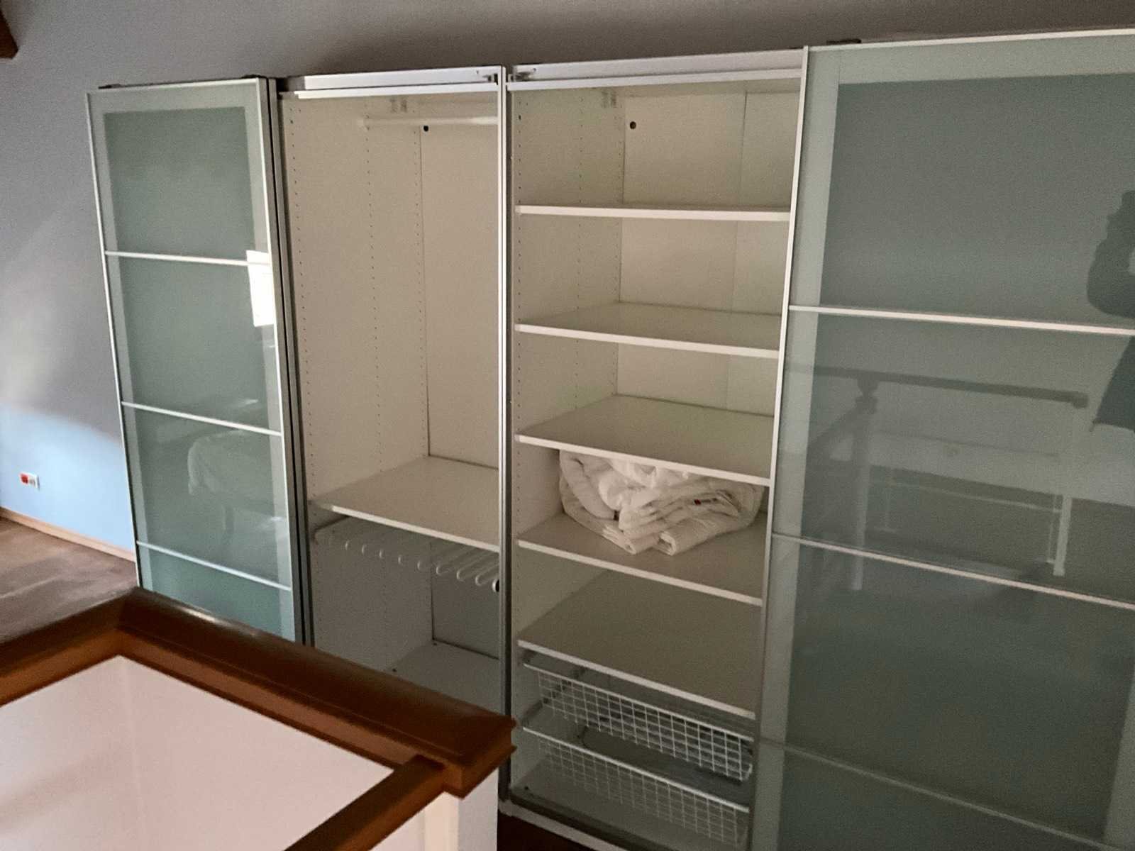 Voorzien van 4 schuifdeuren, inclusief 1 matras afmetingen irca 200x170cm, zonder bed, 2 nachtkastjes, 2 nachtlampjes en 3 vloerlampen Nee Lengte: 300cm Breedte: 65cm Hoogte: 203cm